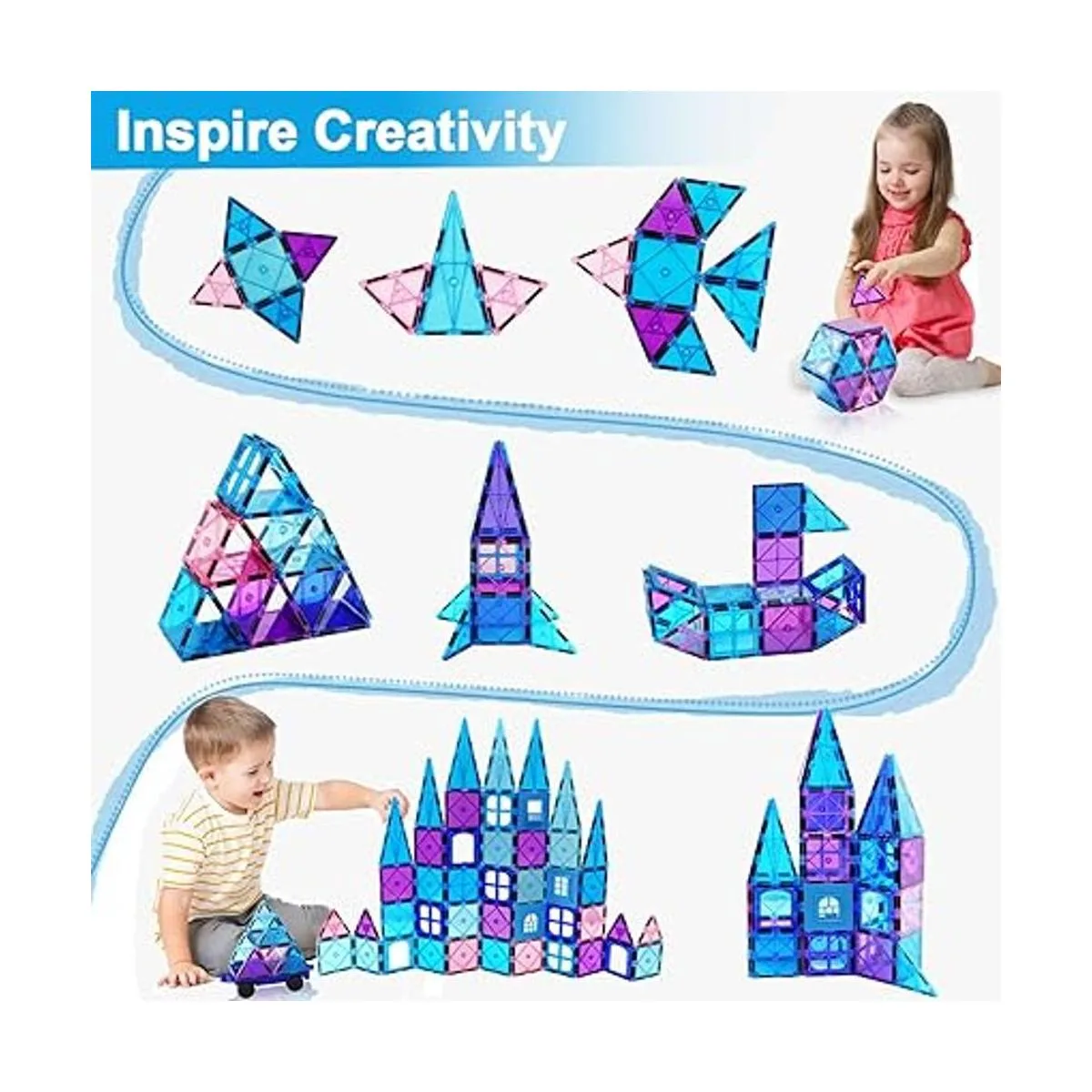 Seguro y duradero: los juguetes de bloques magnéticos para niñas de 2 a 4 años, 5 a 6 años están hechos de material ABS original libre de BPA, el borde redondo y liso es seguro para que los niños jueguen, el imán fuerte también proporciona un proceso de soldadura ultrasónica pruebas antilanzamiento para evitar que se rompa.