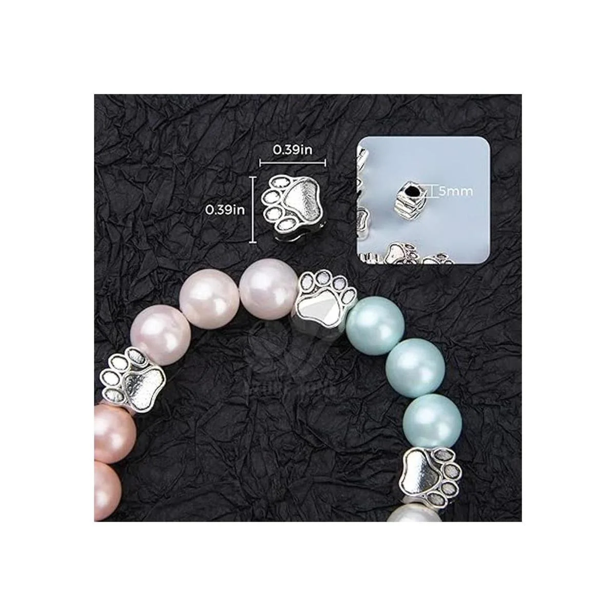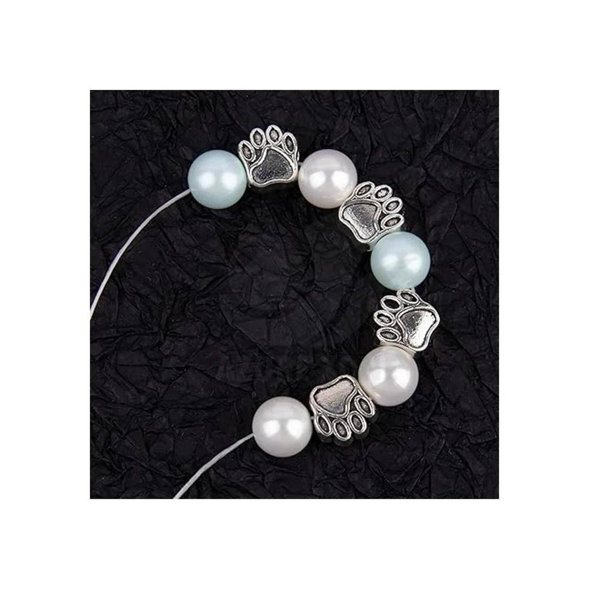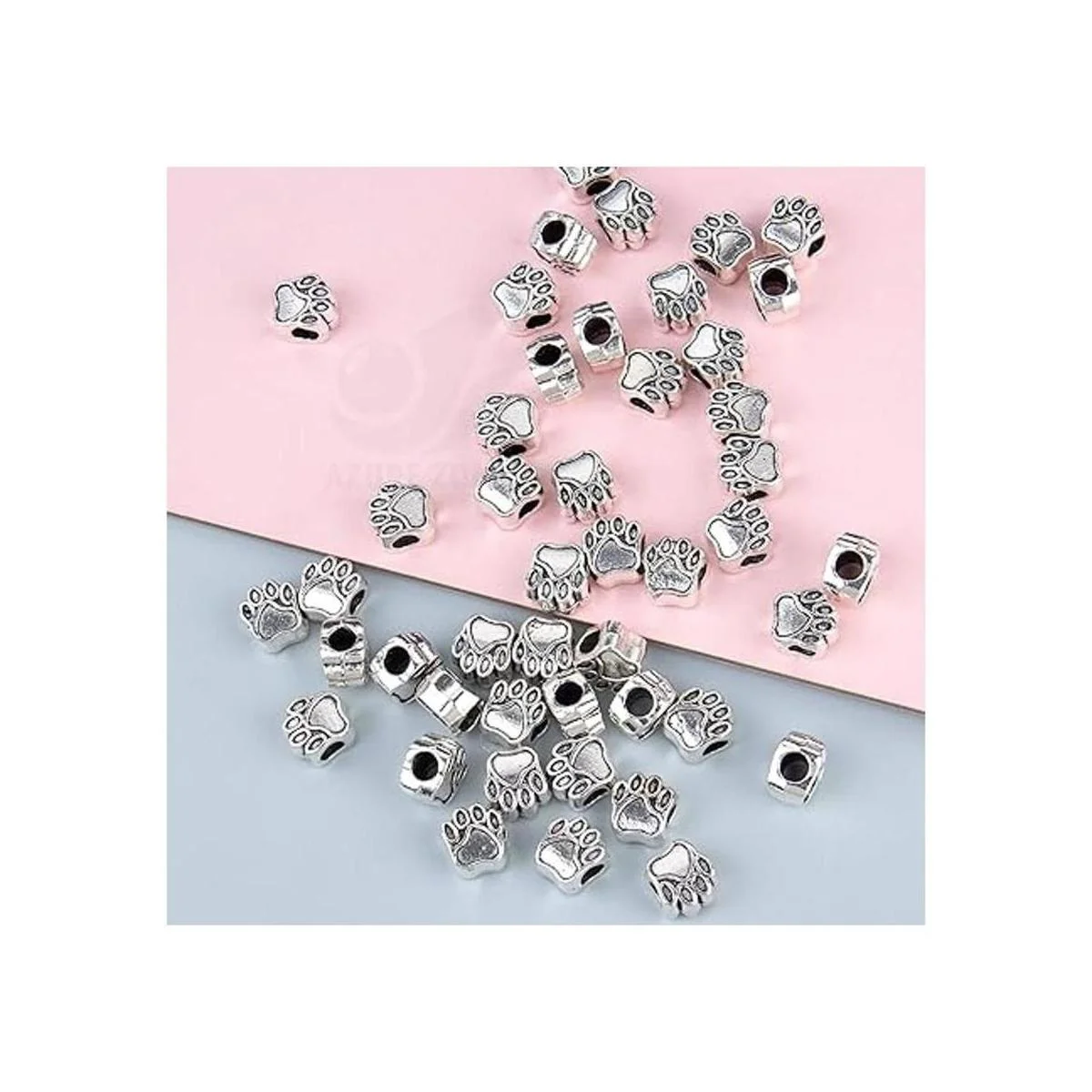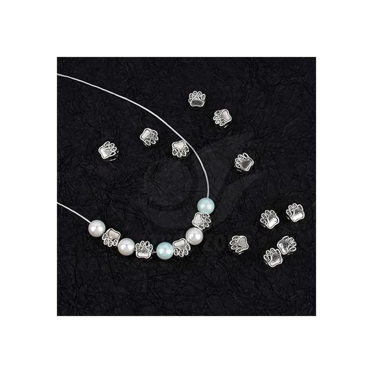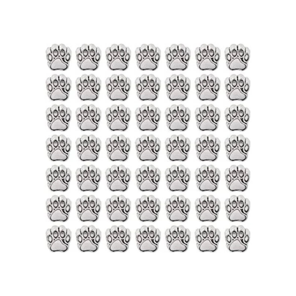 Azure Zone, 50 unidades de cuentas de huella de perro de mascota, diseño de pata de cachorro de plata con gran agujero de impresión de metal para joyería europea