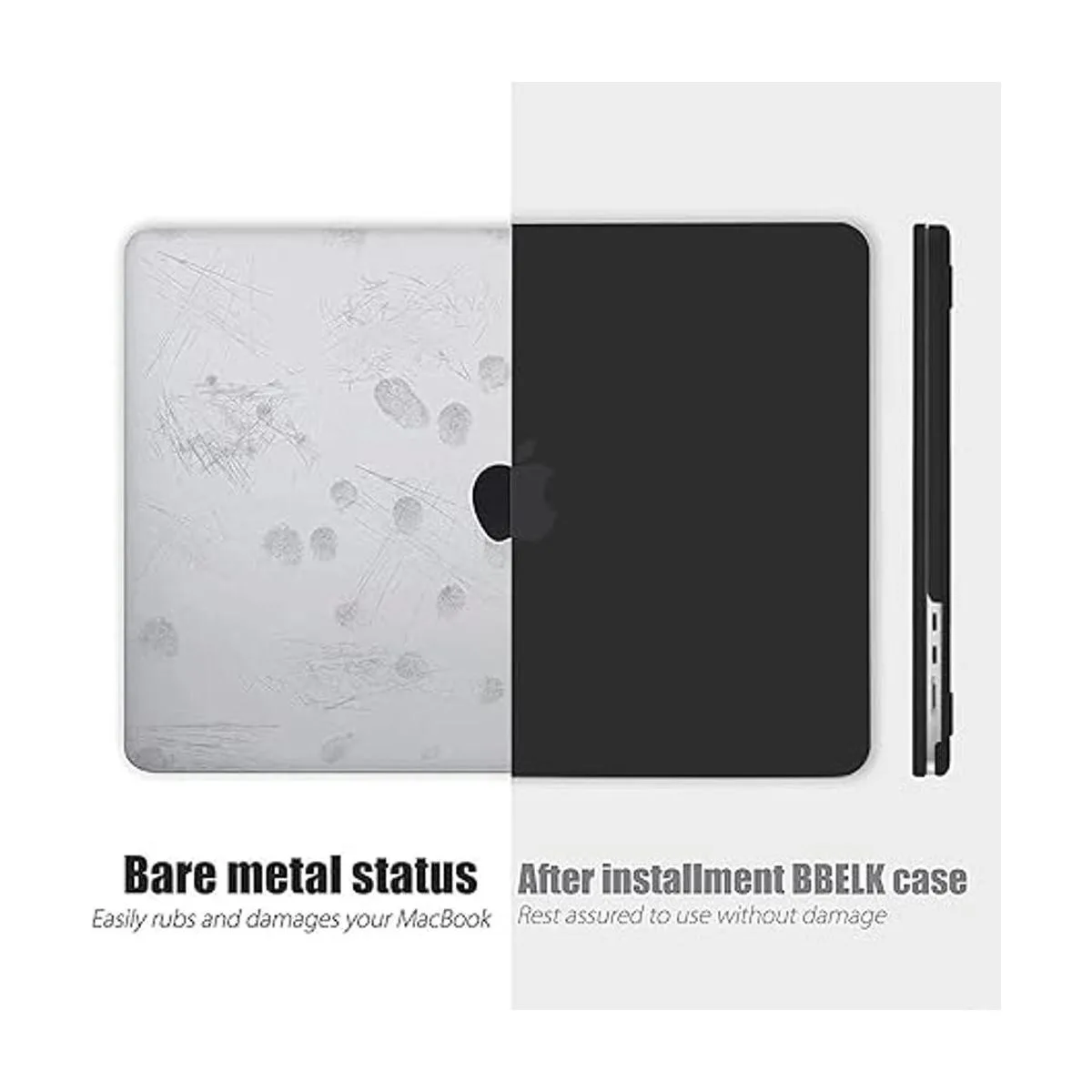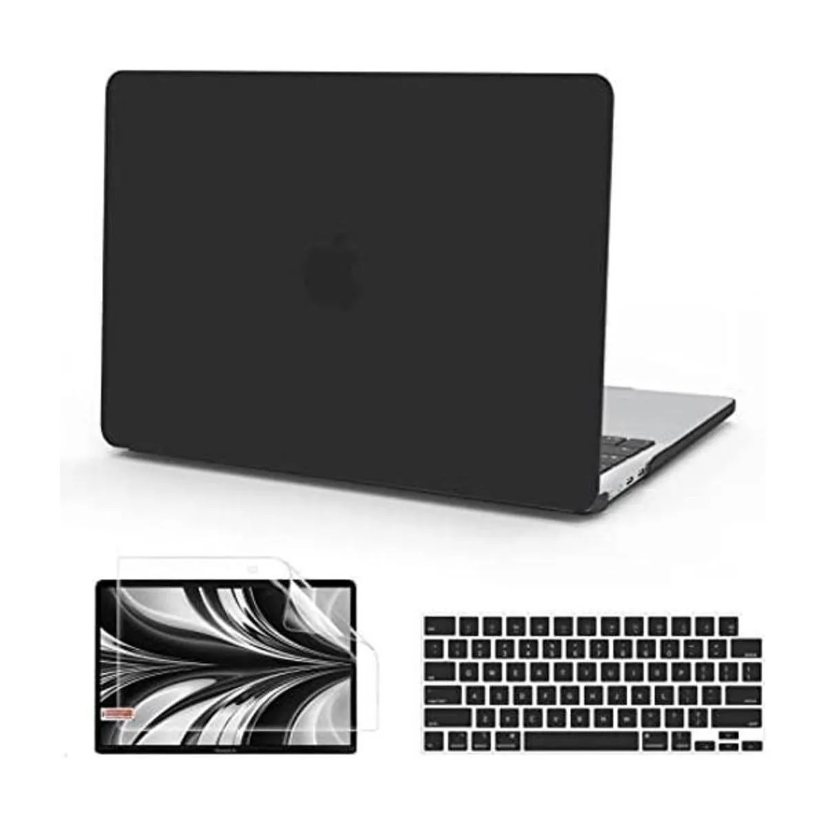 B BELK Compatible con MacBook Air de 13.6 pulgadas 2022, MacBook Air M2 A2681 con pantalla líquida de retina e identificación táctil, funda rígida de plástico mate para laptop, funda de teclado y protector de pantalla, color negro