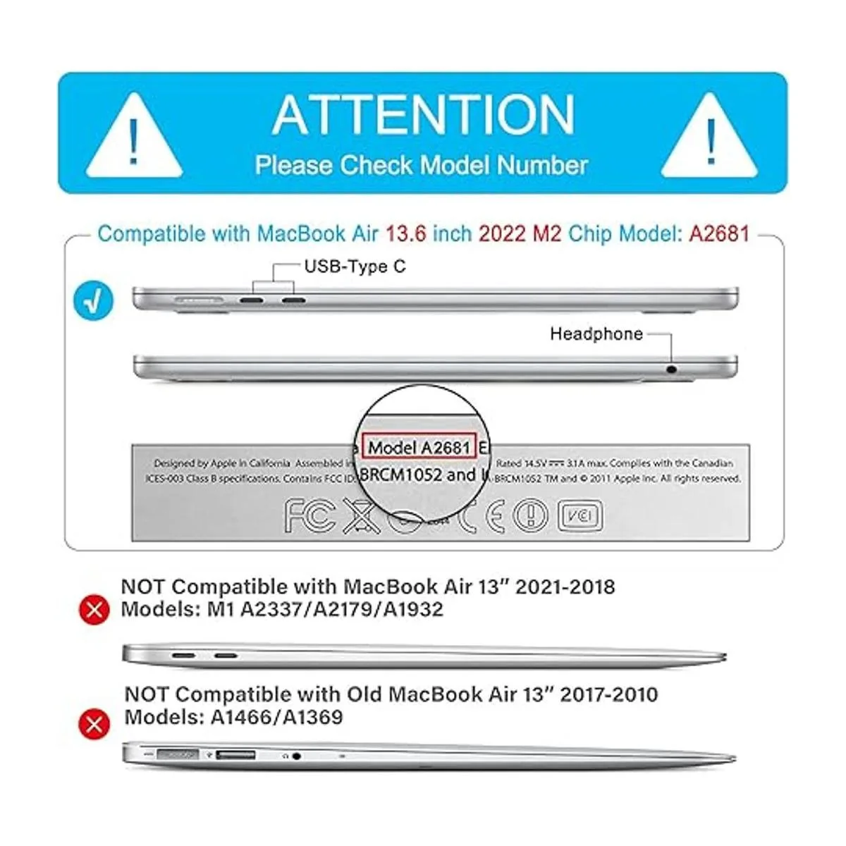 Compatibilidad: la funda para MacBook Air 2022 solo es compatible con MacBook Air de 13.6 pulgadas versión 2022 chip M2 con pantalla de retina líquida y Touch ID modelo: A2681. Comprueba el número de modelo A1XX en la parte posterior de la laptop antes de comprar. No compatible con otros modelos de MacBook