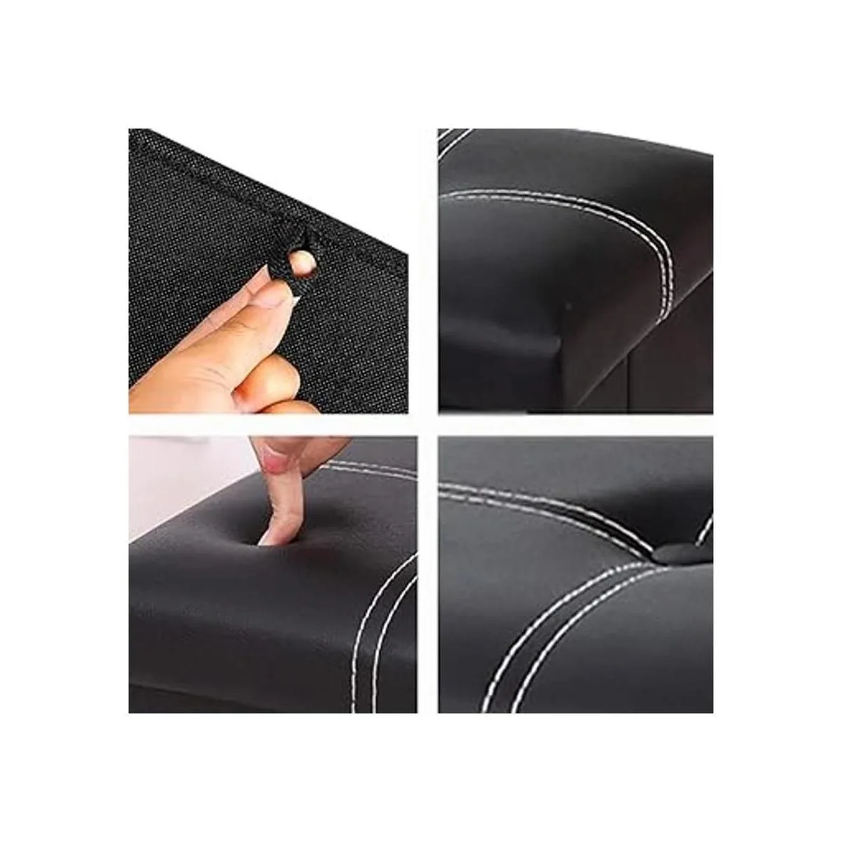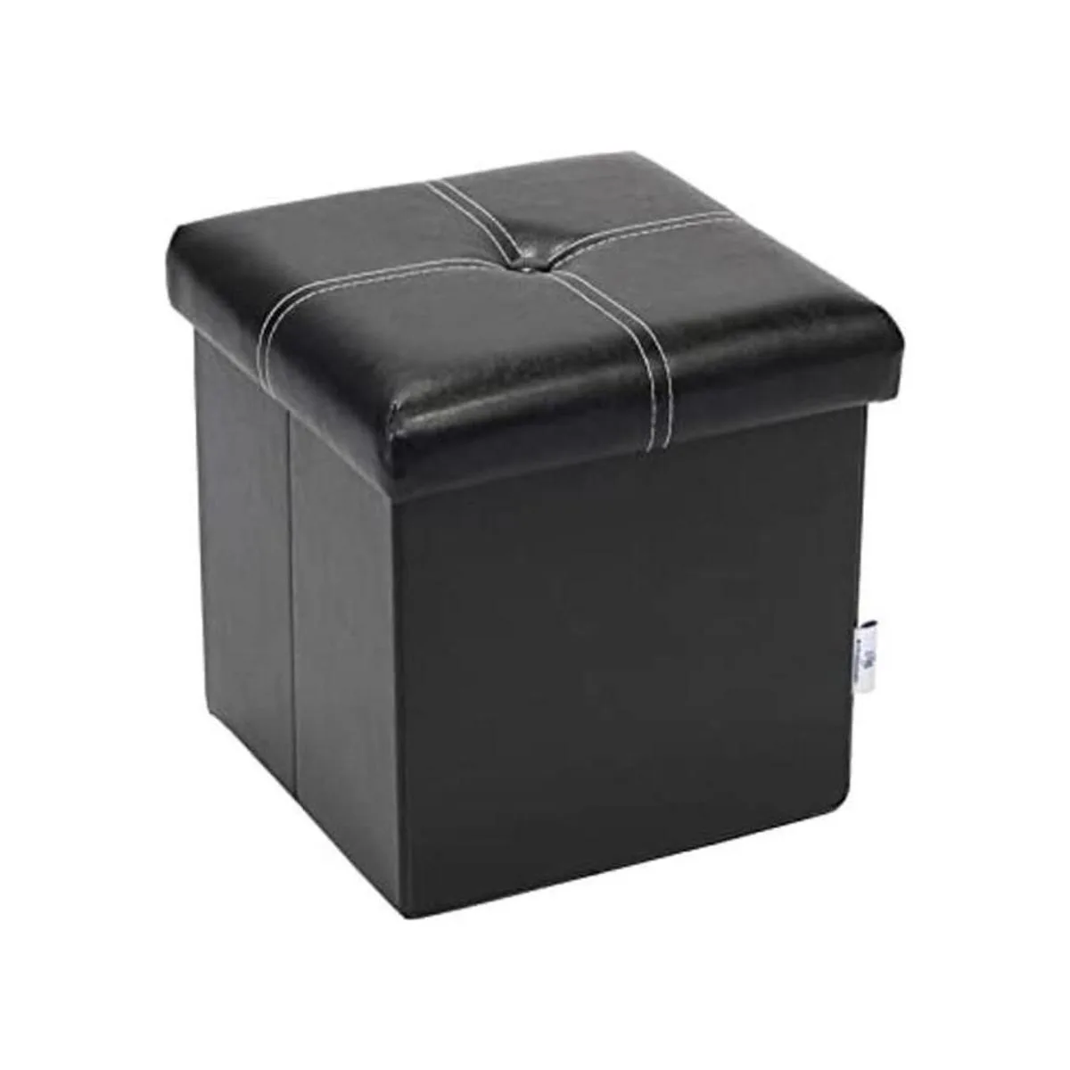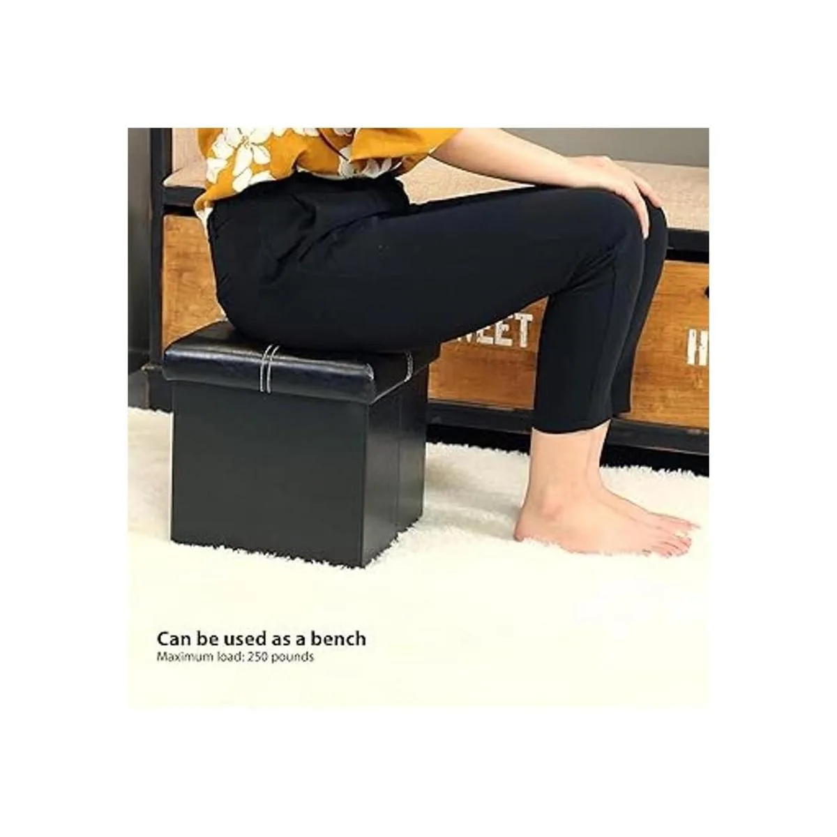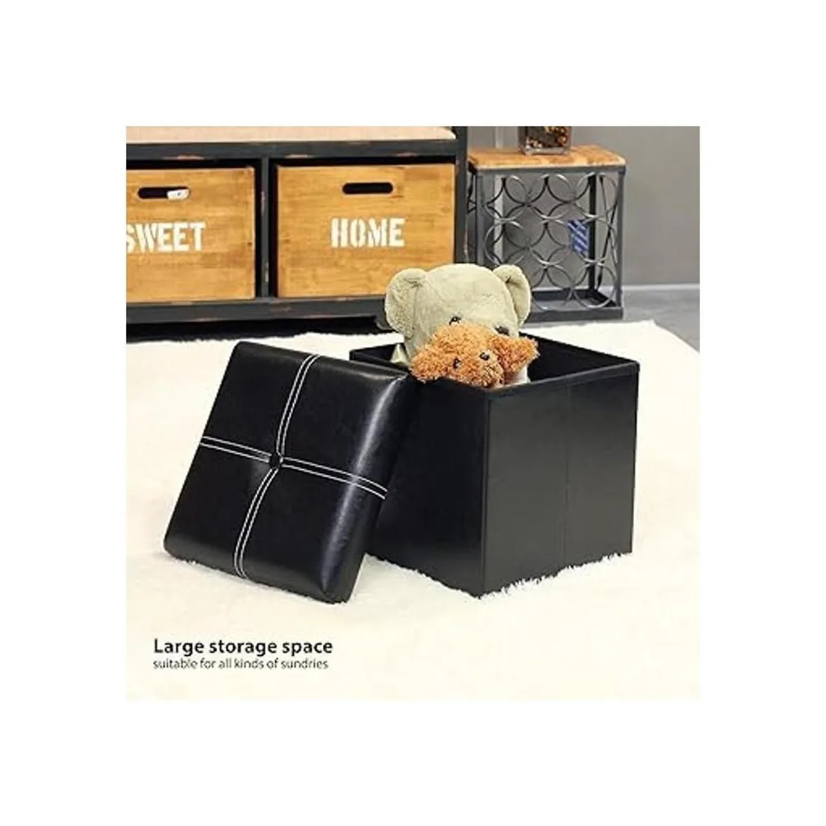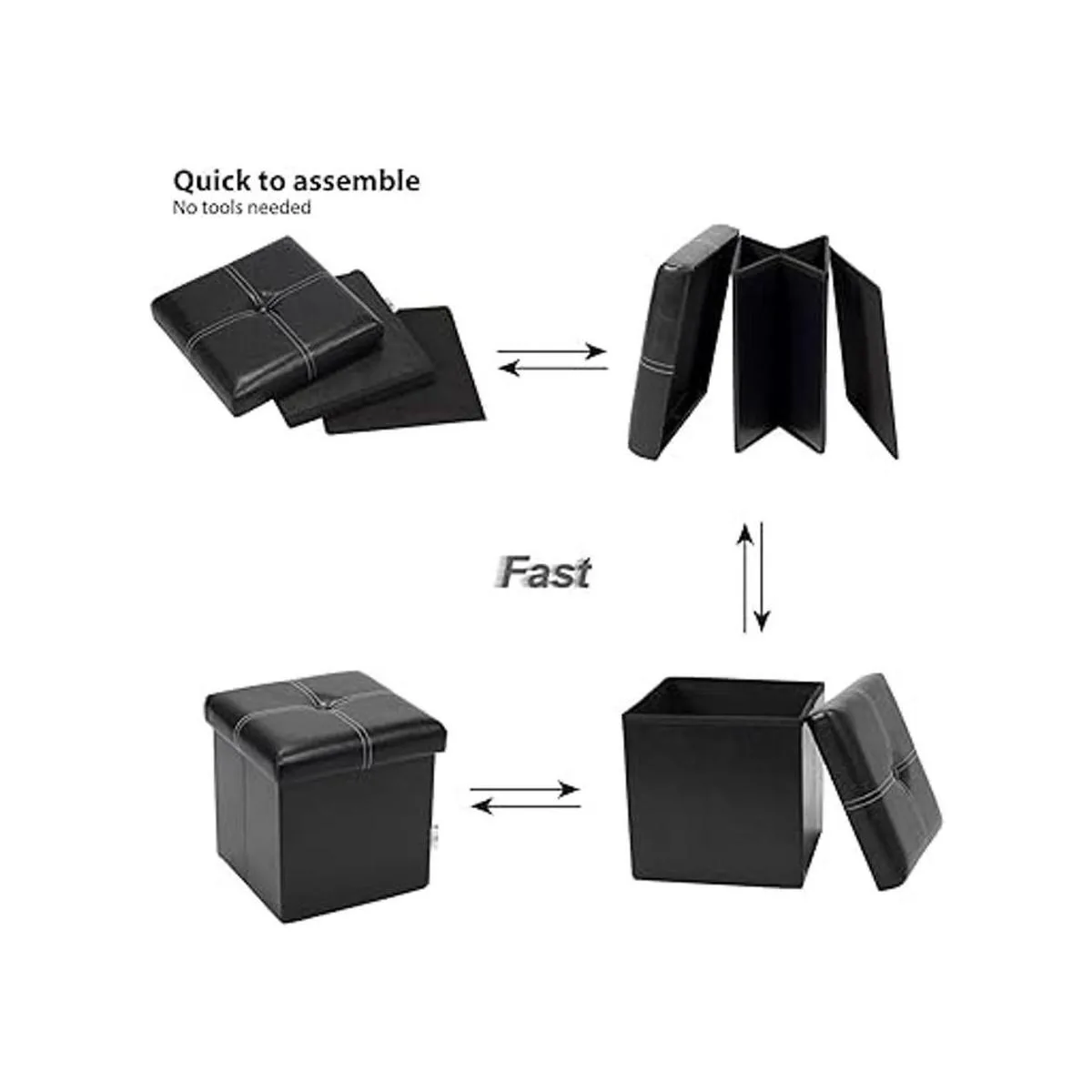 B FSOBEIIALEO Otomana de almacenamiento con cuero sintético plegable pequeño y cuadrado para reposapiés, mesa de centro negra, 11.8 x 11.8 x 11.8 pulgadas