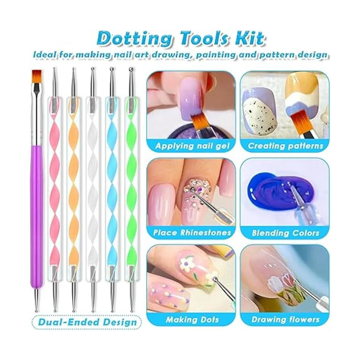 Cómodo de usar El lápiz y las pinzas con diamantes de imitación te ayudan a recoger y colocar fácilmente diamantes de imitación en todas tus joyas, diseño de arte de uñas y proyectos de álbumes de recortes. Las herramientas de punteado de doble uso tienen 2 extremos diferentes, las puntas de punteado de acero inoxidable de varios tamaños son ideales para producir puntos, dibujar líneas y mezclar colores en las uñas, ayudándote a hacer tus propios estilos de arte de uñas. La punta del cepillo está hecha de nailon suave y funciona bien con esmalte de uñas regular y gel.