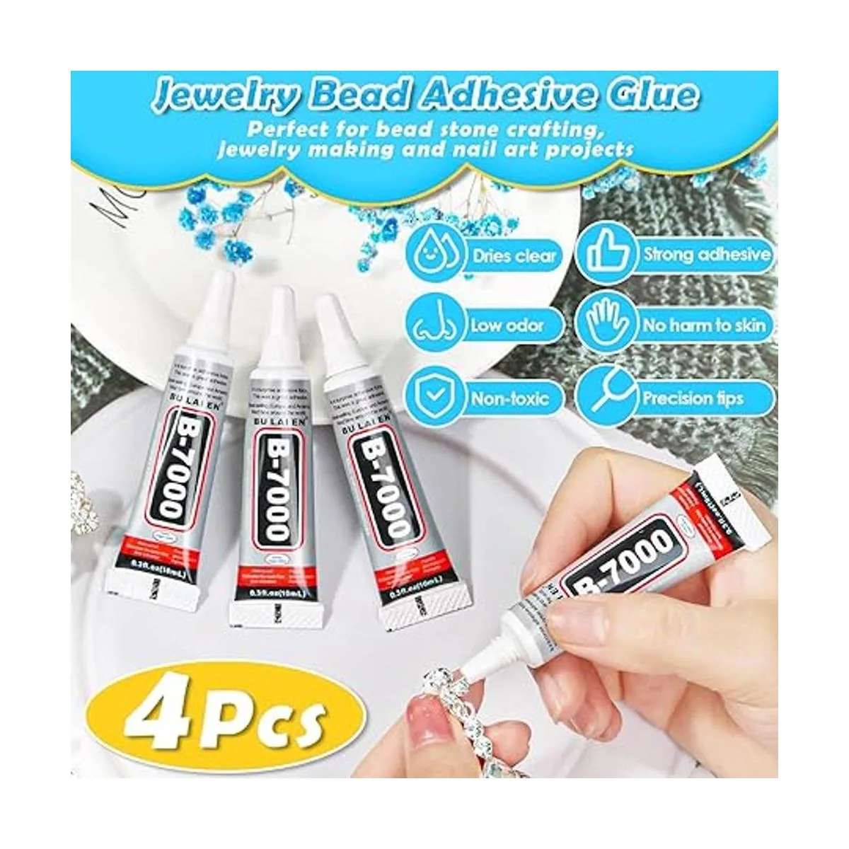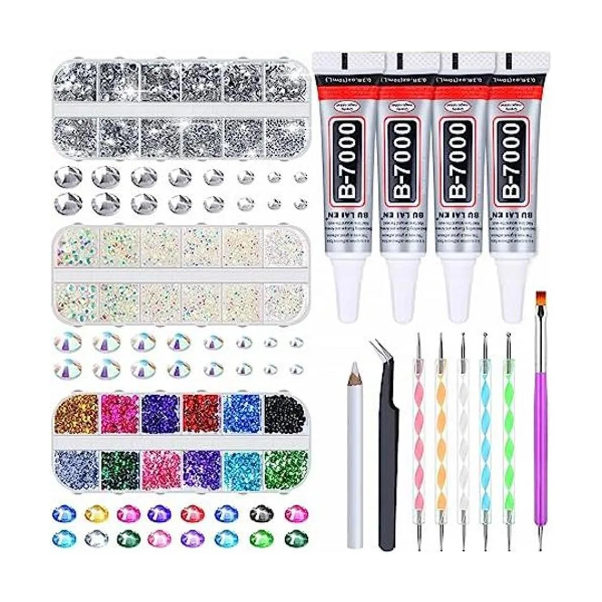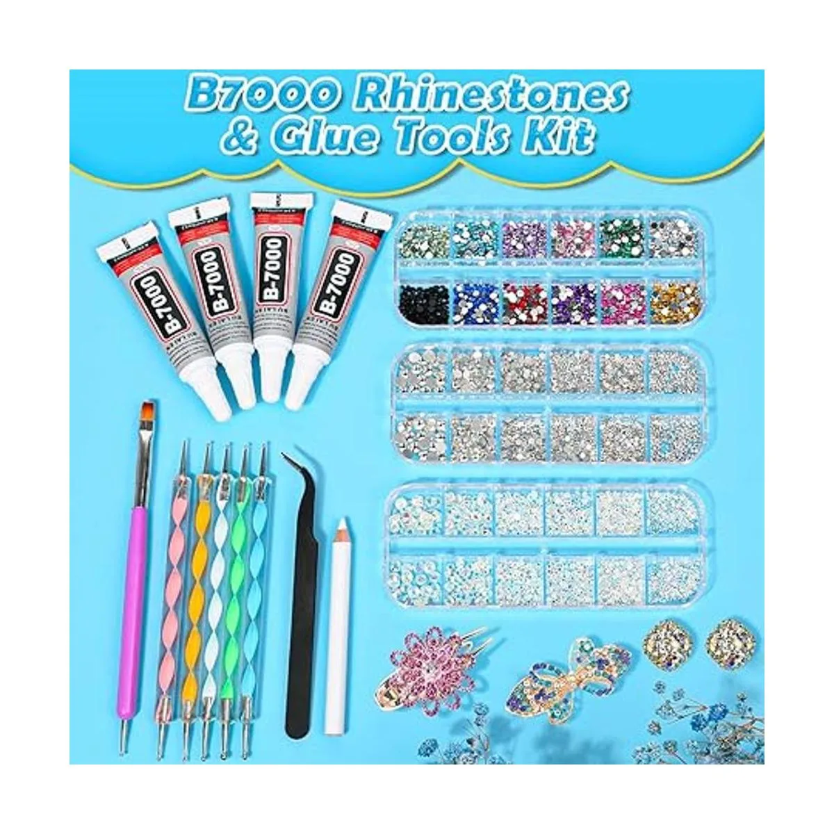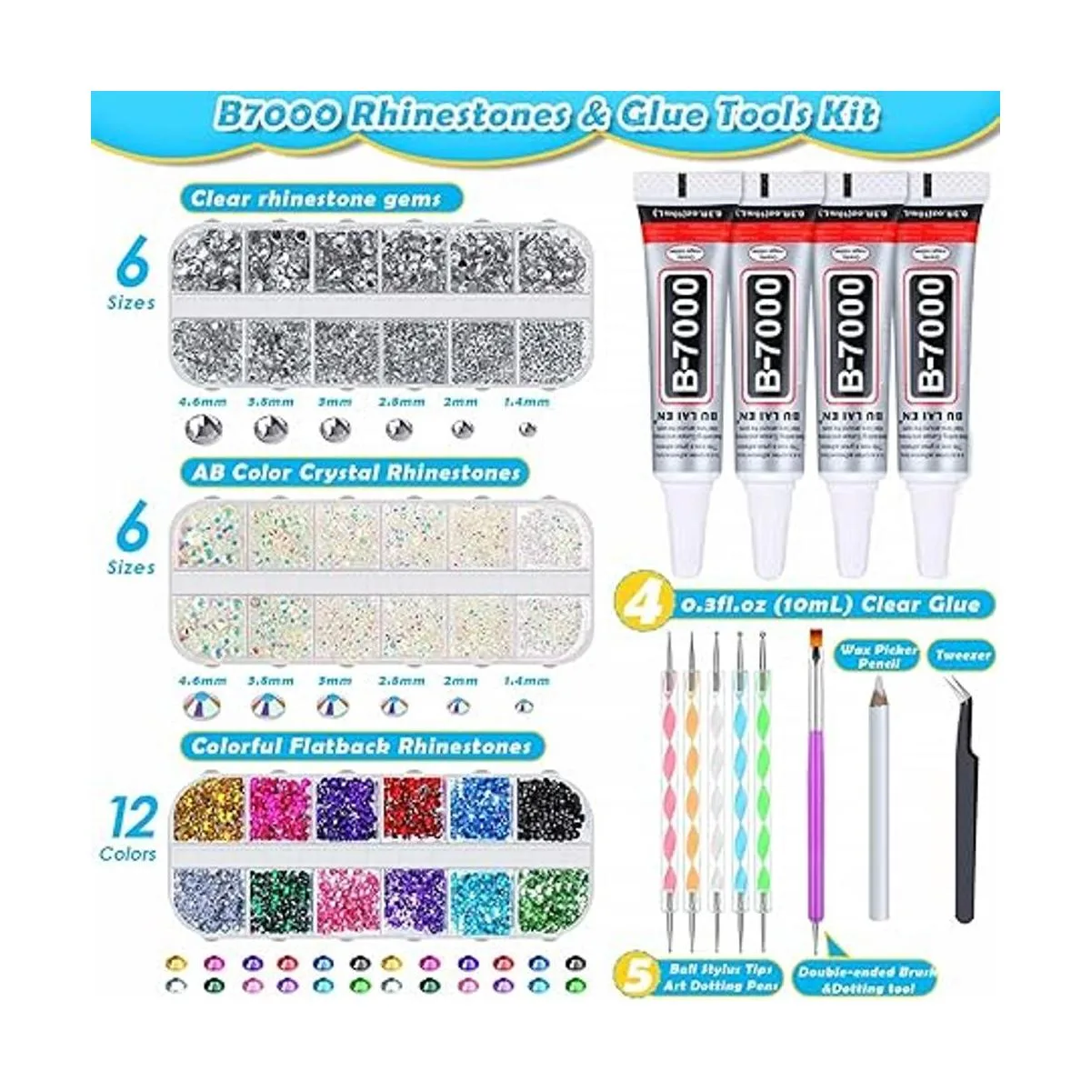 B7000 Pegamento de joyería con diamantes de imitación para manualidades, 4500 gemas de diamantes de imitación con pegamento de diamantes de imitación para zapatos, tela de tela con lápiz recogedor de cera para manualidades, pintura de diamantes, fabricación de joyas y arte de uñas