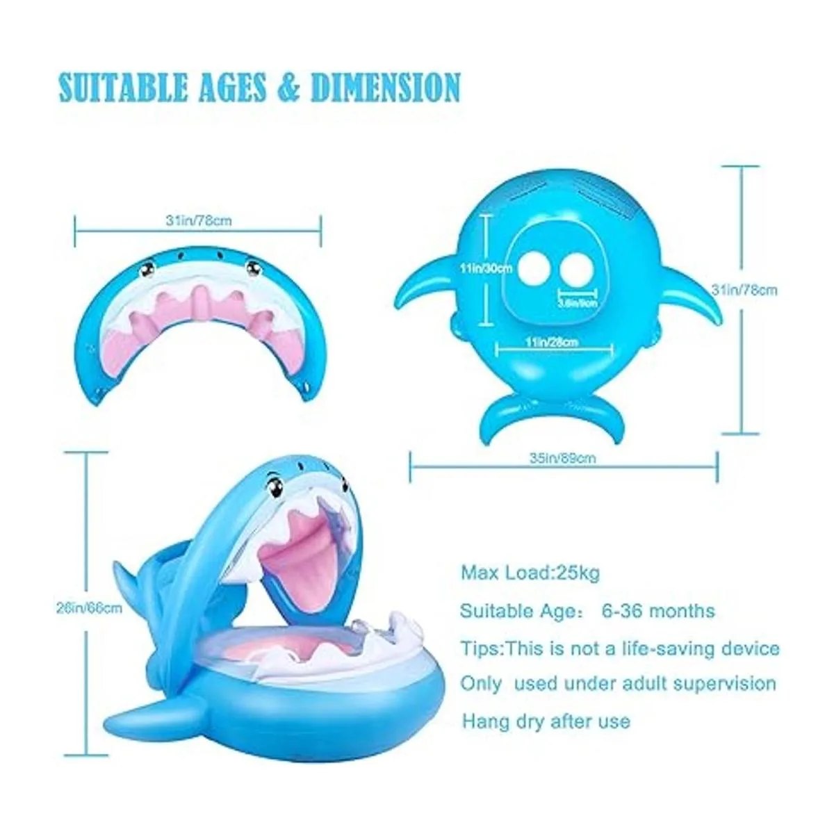 Baby Float Swimming Pool Toddler Floaties with Inflatable Canopy Shark Infant Pool Float for Kids Aged 636 Months