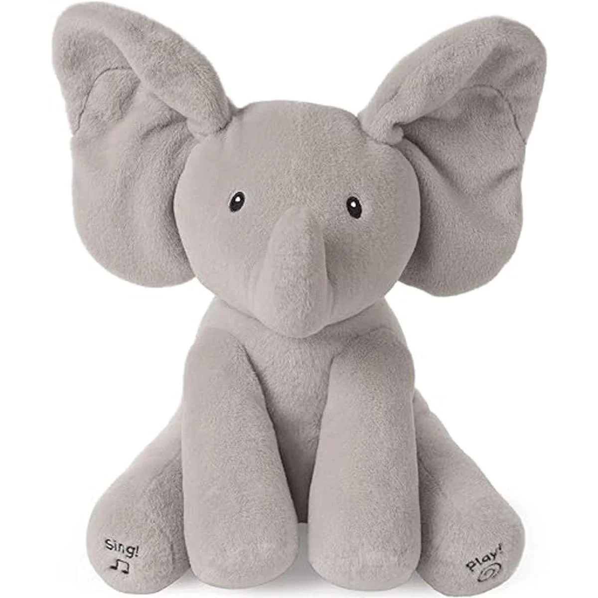 Flappy el Elefante: El peluche animado de Flappy el Elefante de Gund es un adorable peluche animado que canta y tiene dos modos de juego diferentes. Pulsa el pie izquierdo para jugar a un juego interactivo de dónde está el bebé, y pulsa el derecho para escuchar la canción Do Your Ears Hang Low con la bonita voz de un niño.