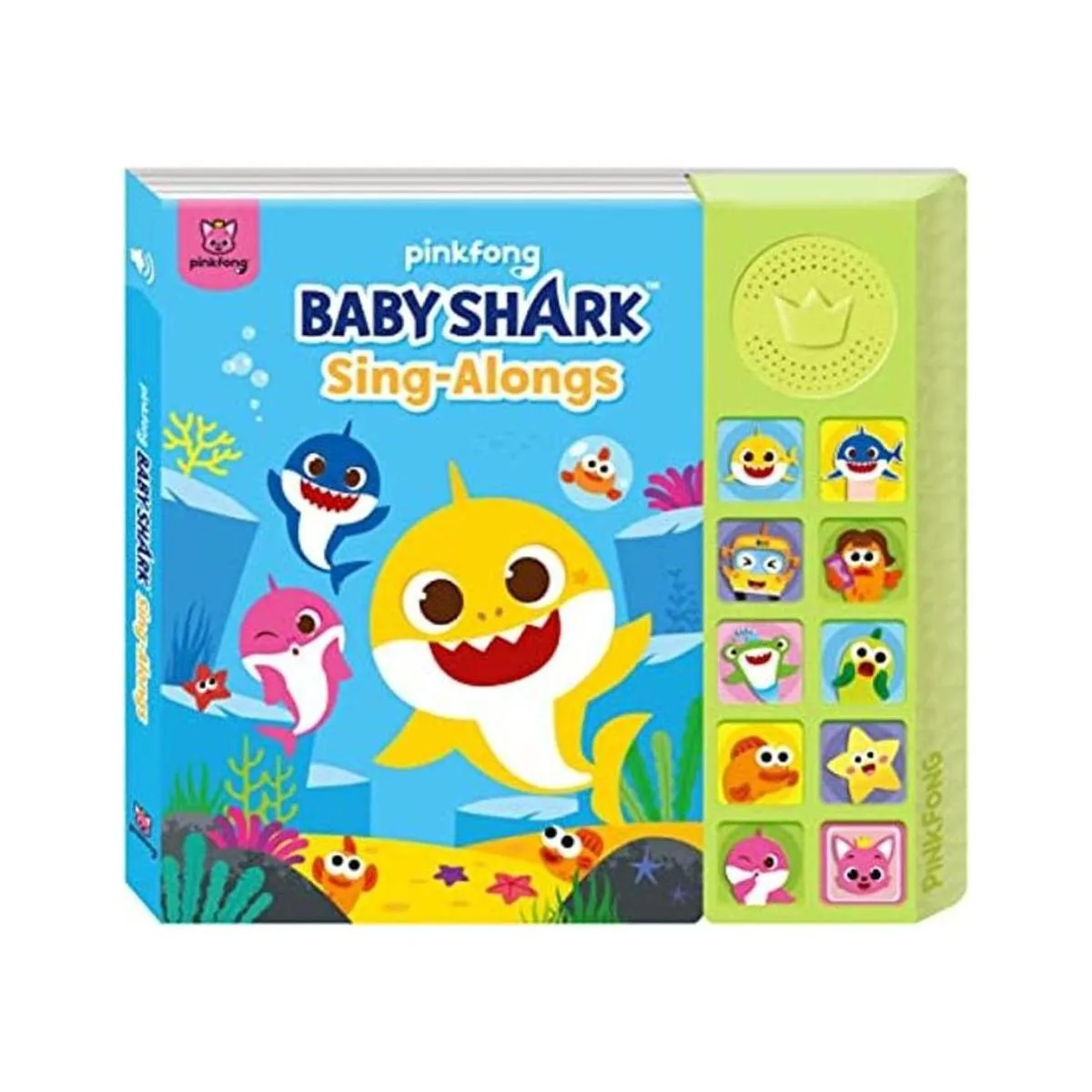 Libro oficial de tiburón bebé de PINKFONG que reproduce la icónica canción de Baby Shark doo Nuestro libro de sonido premium de 10 botones cuenta con 10 botones de reproducción, 9 canciones completas de canto sonido de picadura Pinkfong adicional y 16 páginas ilustradas de colores con letras en páginas no deslumbrantes y altamente duraderas.