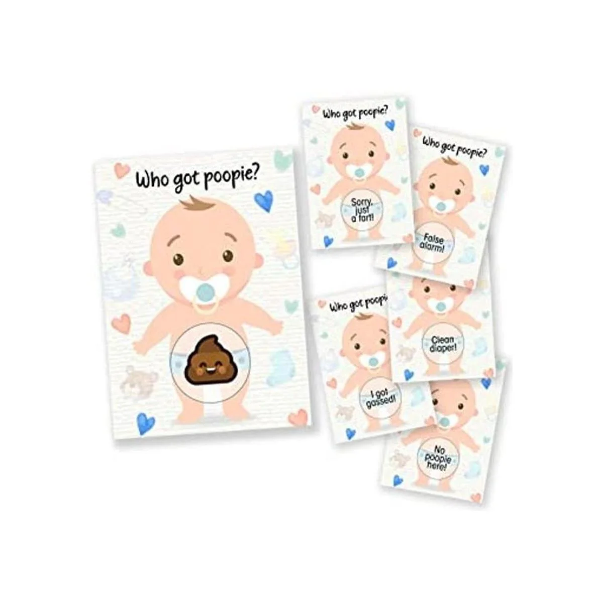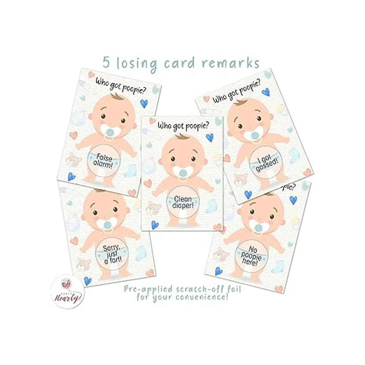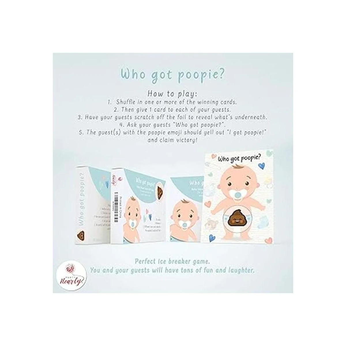 Juego divertido e increíble: tus invitados desearán recibir a Poopie. Este juego tiene 33 tarjetas 3 ganadores y 30 tarjetas perdedoras. Son perfectas para animar tus actividades de baby shower. Tu fiesta estará llena de diversión, risas y esto será un éxito garantizado.