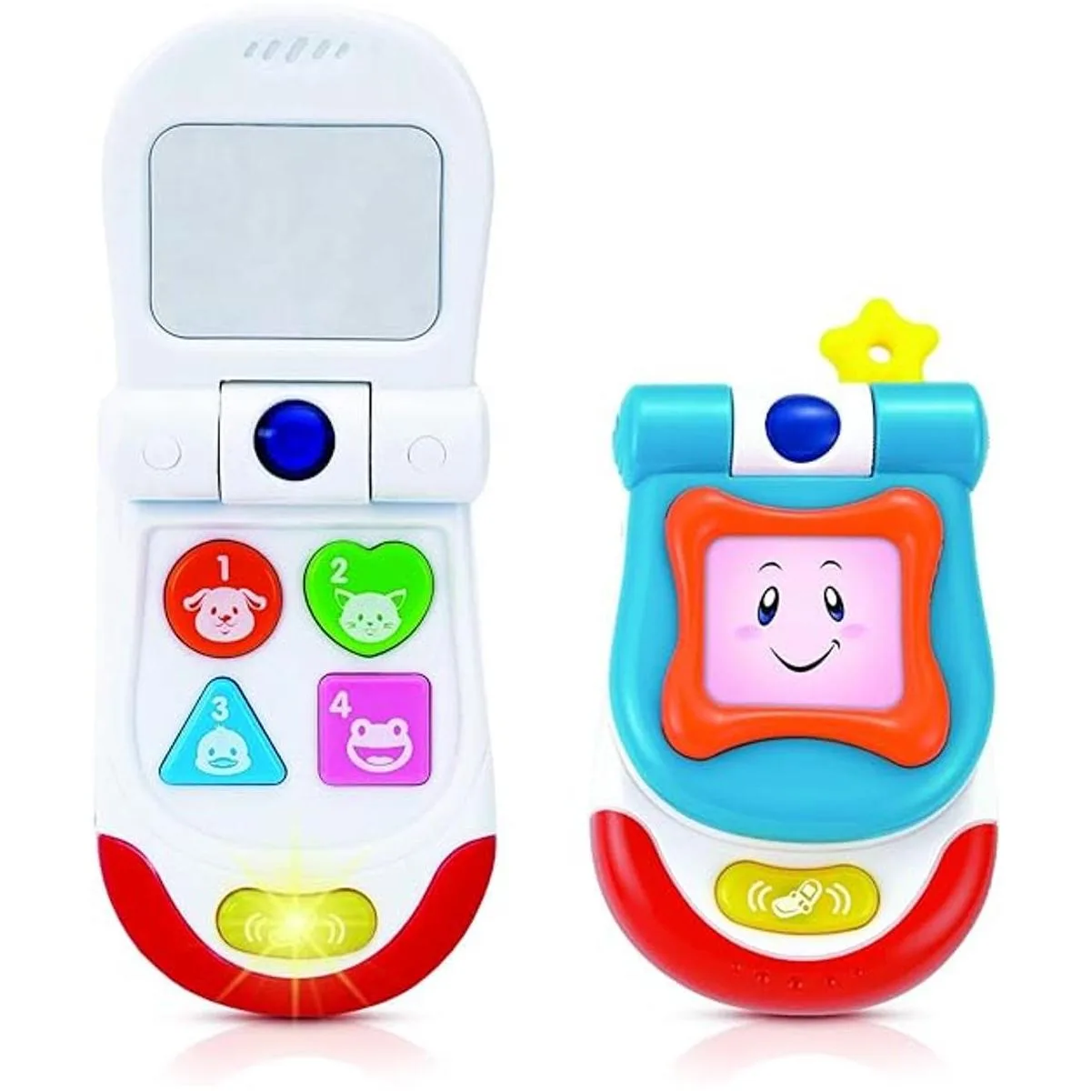 Juguete para teléfono de bebé: se abre fácilmente y se cierra con un clic satisfactorio, los teléfonos móviles son los más divertidos para jugar. Con un tono de timbre realista y otros 4 botones de ruido, este teléfono de reproducción proporciona mucho para explorar. A los bebés les encantará los colores brillantes y el espejo de seguridad, mientras que los niños mayores juegarán más imaginativamente.