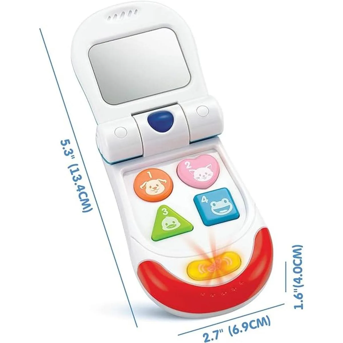 Baby Toy Flip Phone 4 botones interactivos de sonido y música más tono realista Incluye un espejo y divertidos efectos de luz Smartphone juguete para bebés más de 3 meses Certificado ASTM