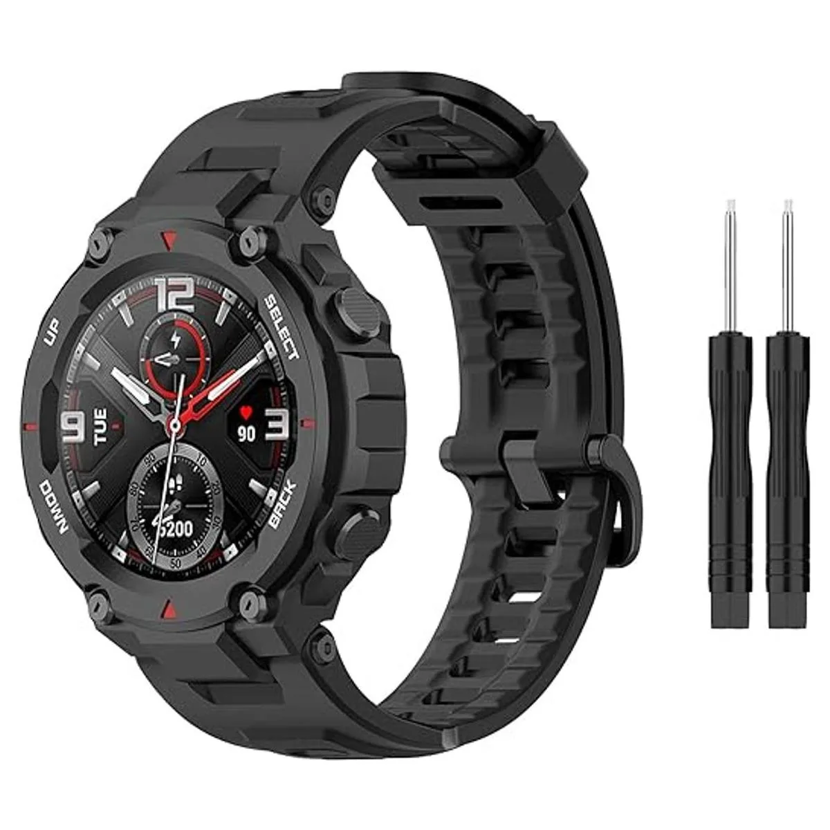 BabyValley Correa compatible con Amazfit Trex de silicona para accesorios de reloj inteligente Amazfit TRexTRex Pro, con herramientas de instalación negro