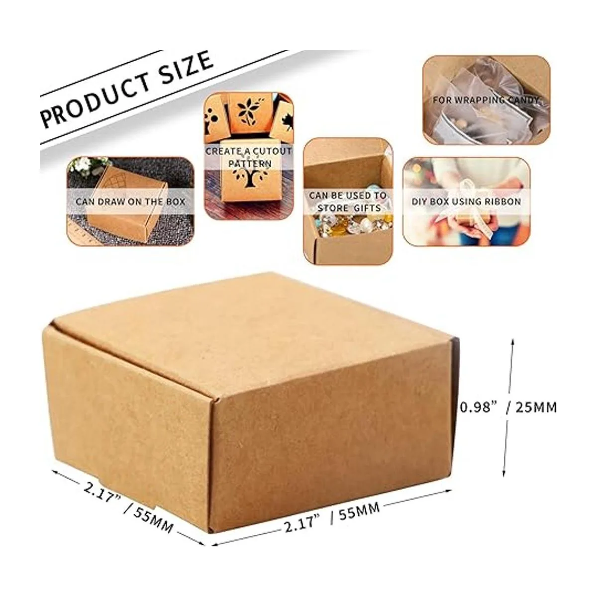 BadenBach 100 mini cajas de regalo de papel de estraza de 2.16 x 2.16 x 0.98, pequeñas cajas de envío de papel de cartón para Navidad, festivales, pequeñas empresas, manualidades de arte, recuerdos de fiesta marrón