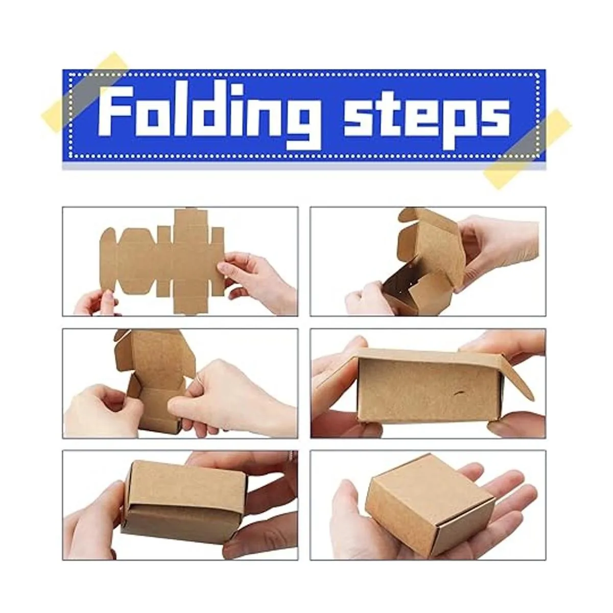 Fácil de montar: estas mini cajas son planas y preplegadas, lo que minimiza el daño a los productos durante el transporte. Fácil de plegar la caja a lo largo de la línea sin pegamento o tijeras como se muestra en la imagen, y puedes desempacarlas y aplanarlas para un fácil almacenamiento si no las utilizas, ahorra eficazmente espacio de almacenamiento