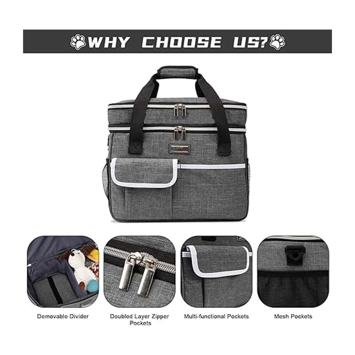 Gran capacidad y funcional: esta bolsa de viaje para mascotas tiene un gran compartimento interior para almacenar golosinas para mascotas, juguetes y otros suministros para mascotas para perros y gatos. Viene con múltiples bolsillos funcionales y solapa ajustable integrada para mantenerse flexible y organizado. Suficiente espacio de almacenamiento para todos los artículos esenciales de tu mascota.