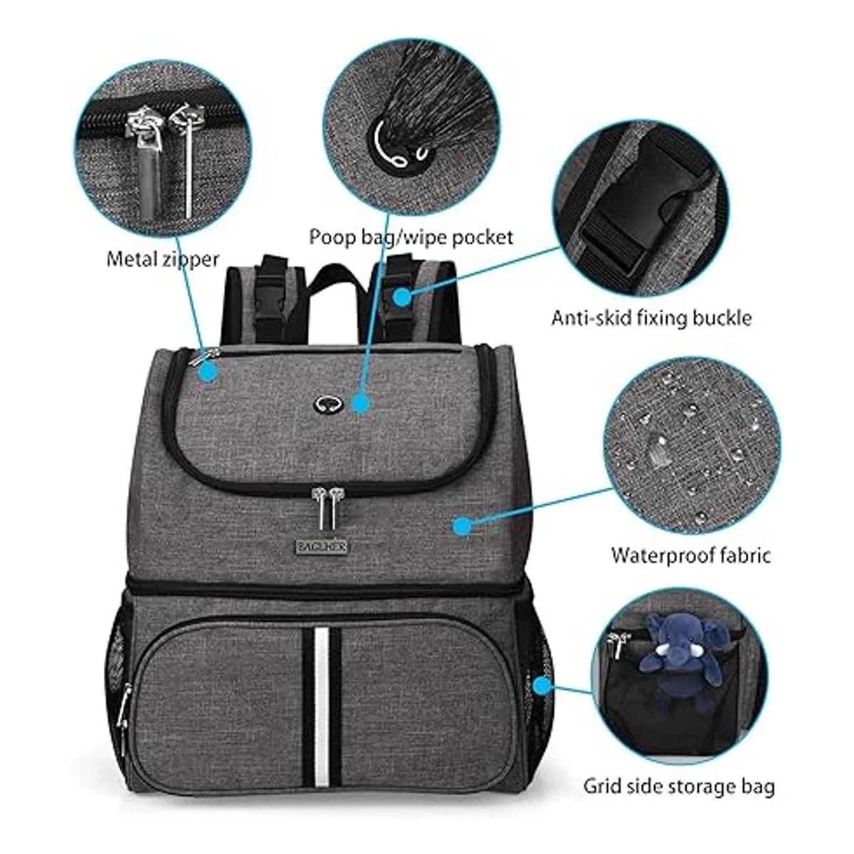 BAGLHER Bolsa de viaje para mascotas, mochila de doble capa para suministros para mascotas para todos los suministros de viaje para mascotas, mochila de viaje para mascotas con 2 cuencos plegables de silicona y 2 cestas de alimentos