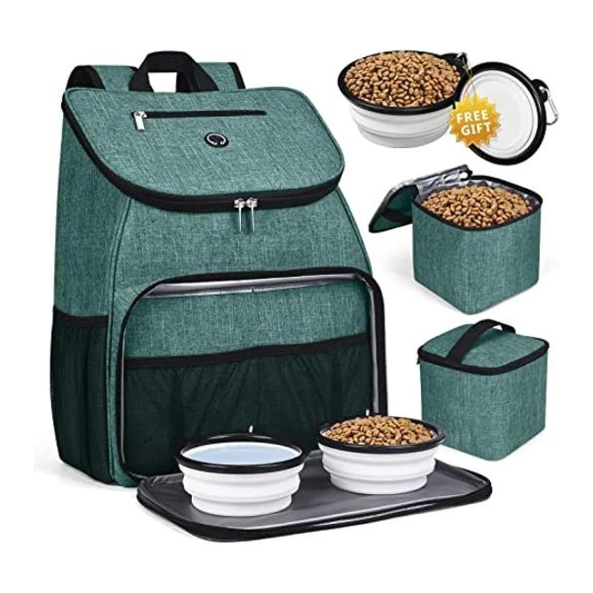 BAGLHER Bolsa de viaje para perros, mochila de suministros para mascotas aprobada por aerolíneas, mochila de viaje para perros con 2 cuencos plegables de silicona y 2 cestas de alimentos.