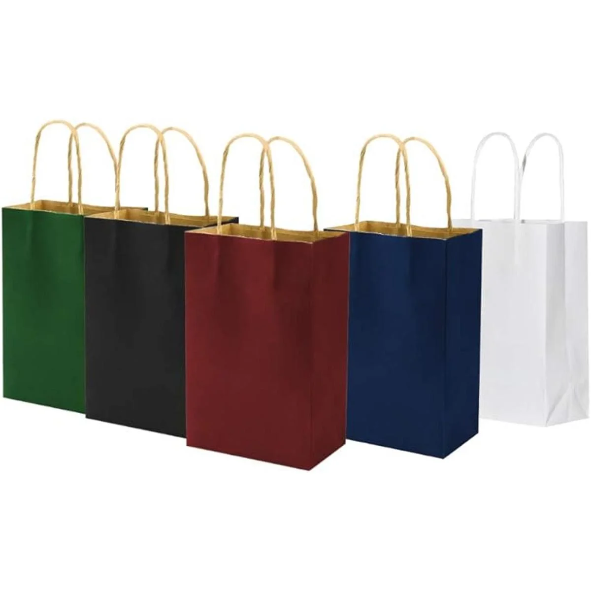 bagmad Paquete de 100 bolsas de regalo multicolor de color pequeño con asas a granel, 5.25 x 3.25 x 8 pulgadas, blanconegroverdeazulrojo cada una, 20 unidades, recuerdos de fiesta de papel kraft para comestibles, compras al por menor, bolsas de papel para manualidades multicolor