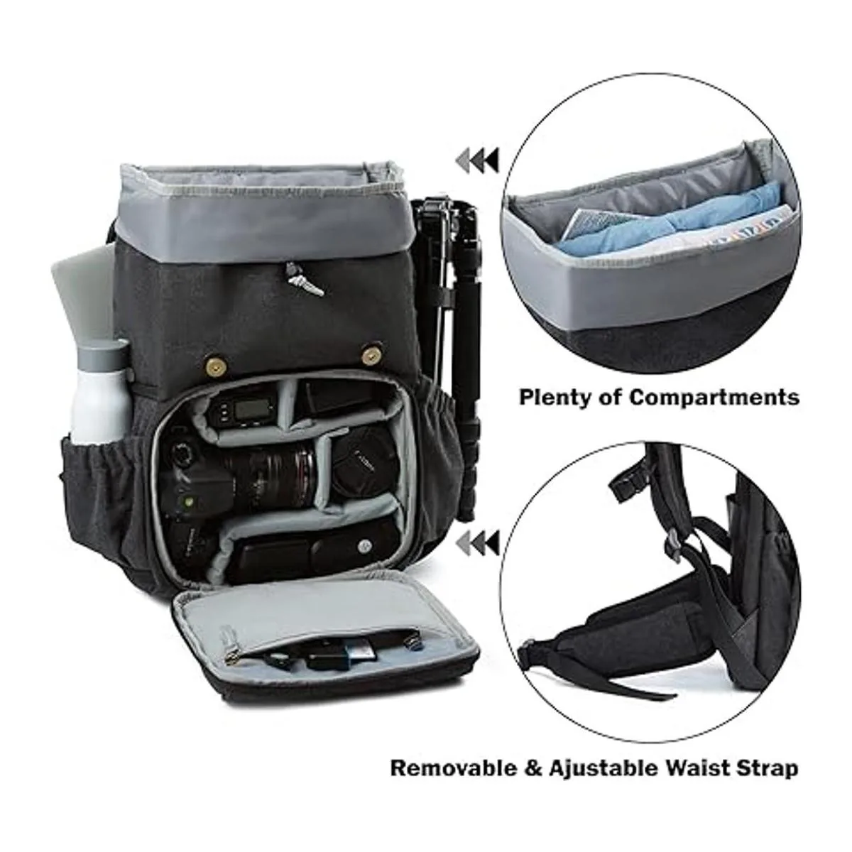 BAGSMART Mochila de cámara para fotógrafos, mochila impermeable DSLR SLR para cámara compatible con laptop de hasta 15 pulgadas con soporte para trípode, cinturón de cintura, funda de lluvia, color negro
