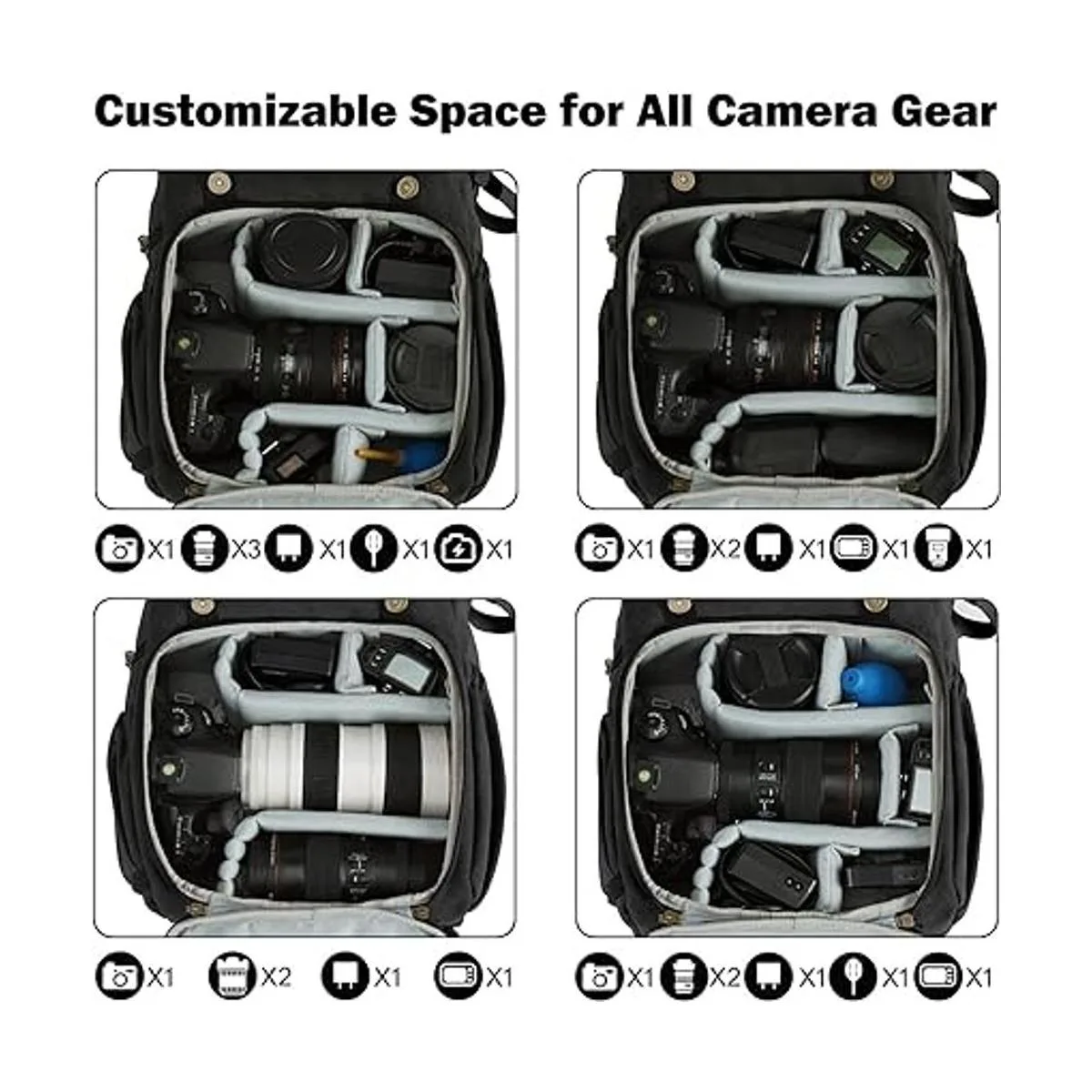 Espacio personalizable: los separadores acolchados extraíbles pueden ajustar el espacio de acuerdo con el tamaño de la cámara y el tipo de accesorios de cámara que llevas para proteger mejor la cámara y los accesorios. Los separadores de extracción se pueden transformar fácilmente en una mochila diaria para portátil.