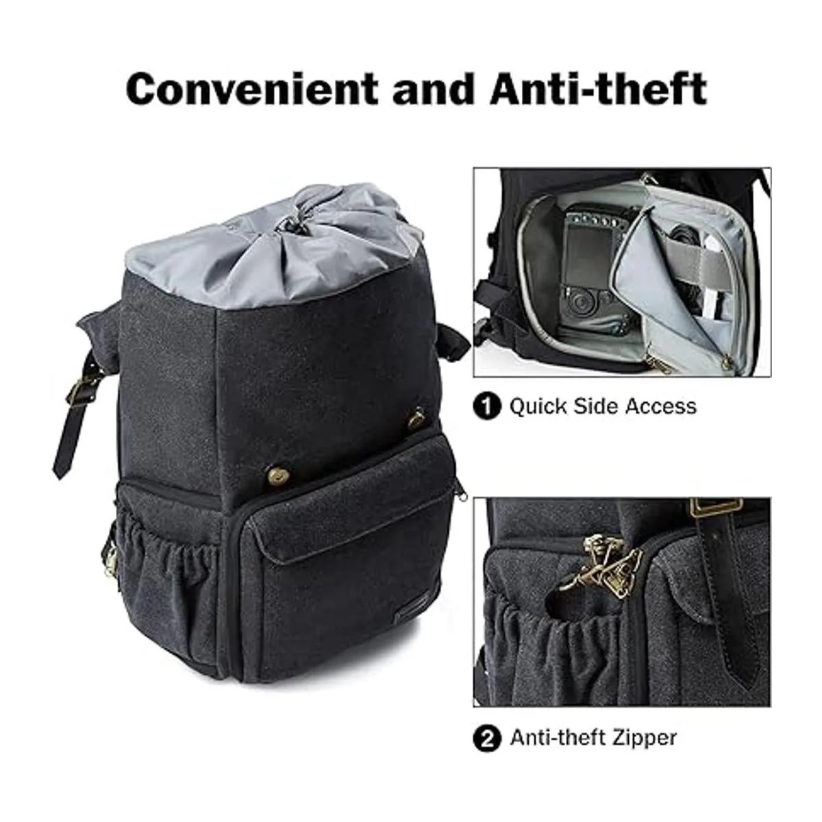 Mantiene la cámara segura: resistente al agua: hecho de lona duradera e impermeable, incluye una cubierta de lluvia. Antirrobo: cremalleras bloqueables y un gancho de metal de alta calidad pueden lograr el propósito de antirrobo.