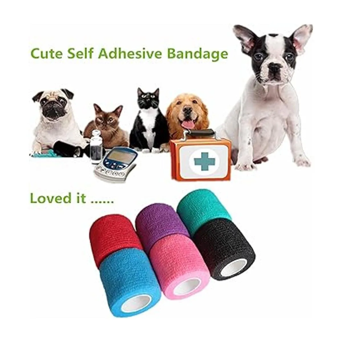 Baisunt Paquete de 6 vendajes cohesivos de 2 pulgadas, cinta autoadhesiva elástica autoadherente para veterinarios, cinta autoadhesiva transpirable para BW02ASB6 0