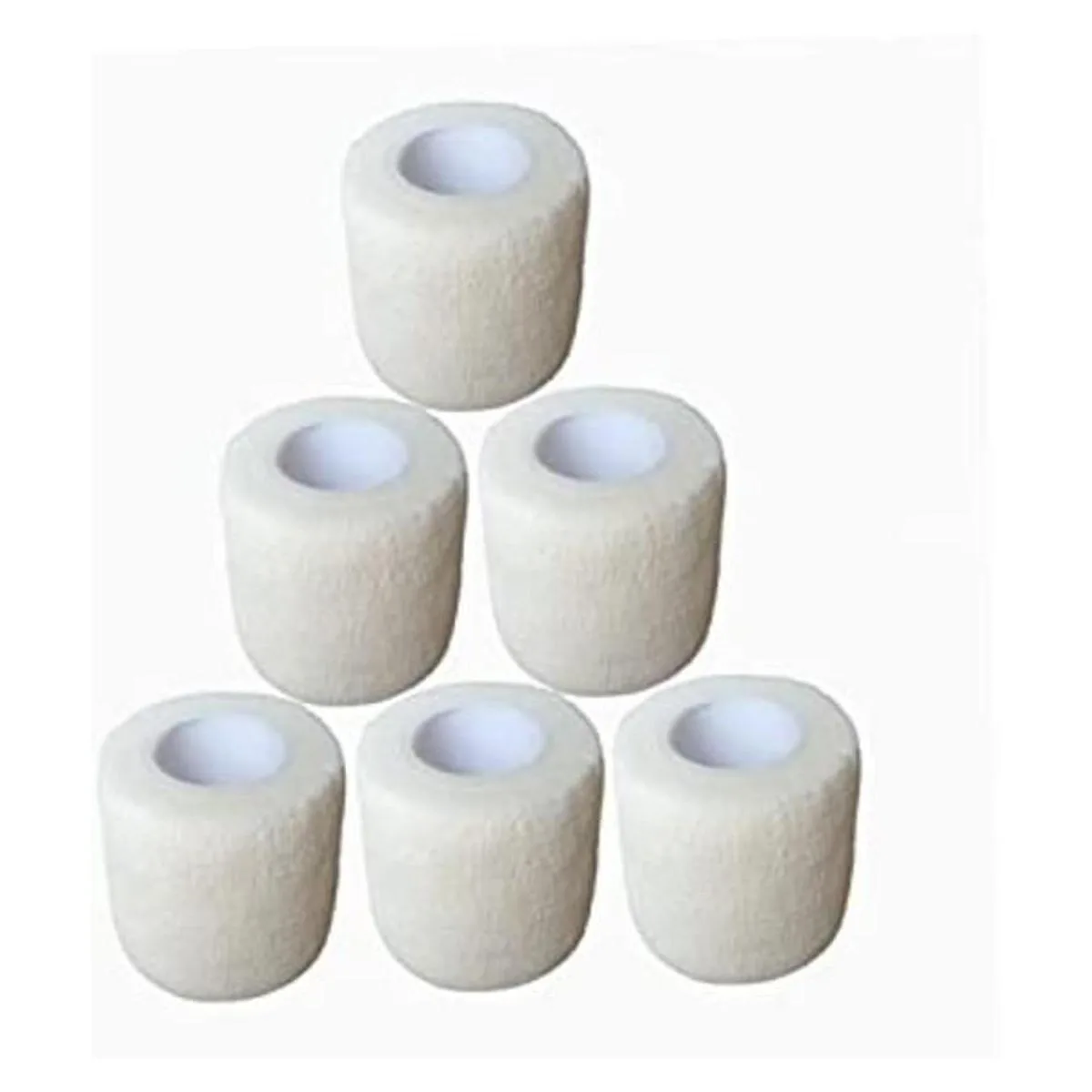 El paquete incluye: 6 rollos de vendaje autoadhesivo blanco.