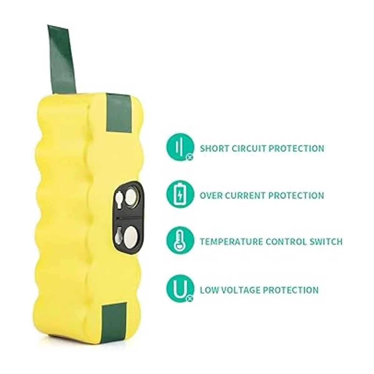Tipo de batería de repuesto: NiMH; Voltaje: 14,4 V; Capacidad: 3000 mAh. Compatible con aspiradora iRobot roomba serie 500, 600, 700, 800.