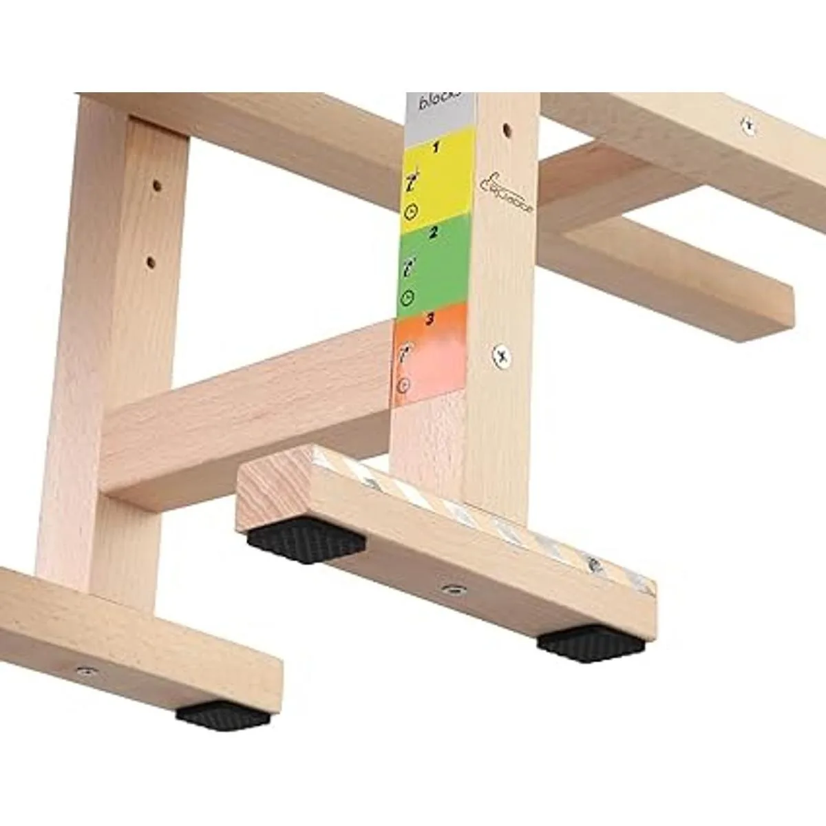 Este teeter Totter es ajustable en tres alturas y tiene bloques que se pueden añadir, quitar o reemplazar. Ajustar a diferentes alturas y dificultades hace que sea más divertido.