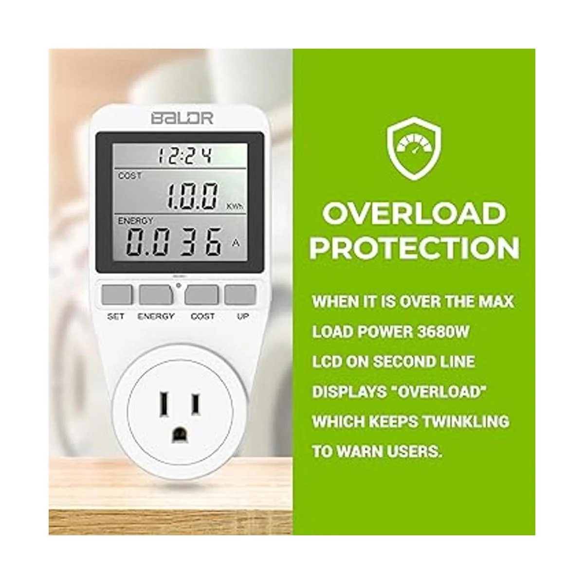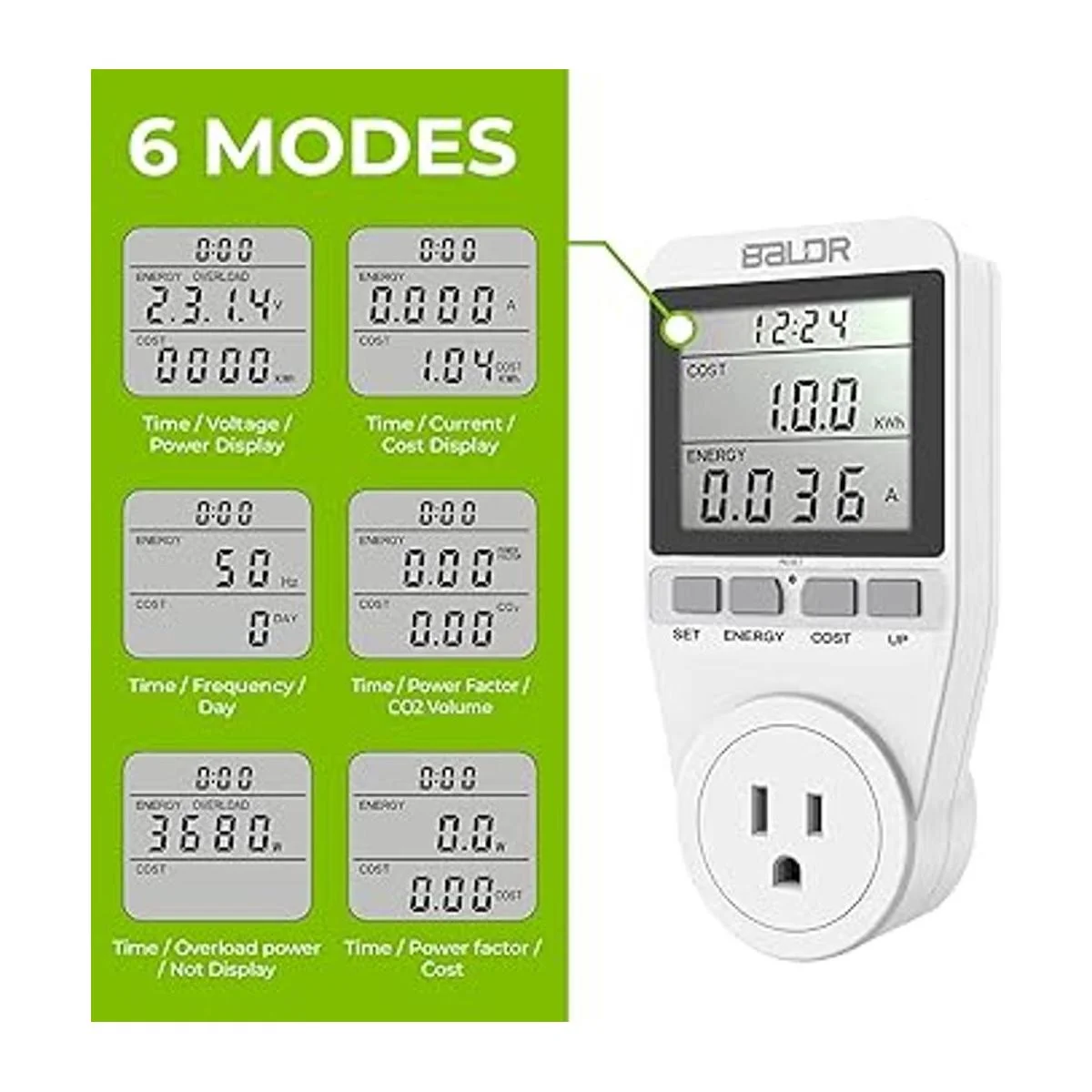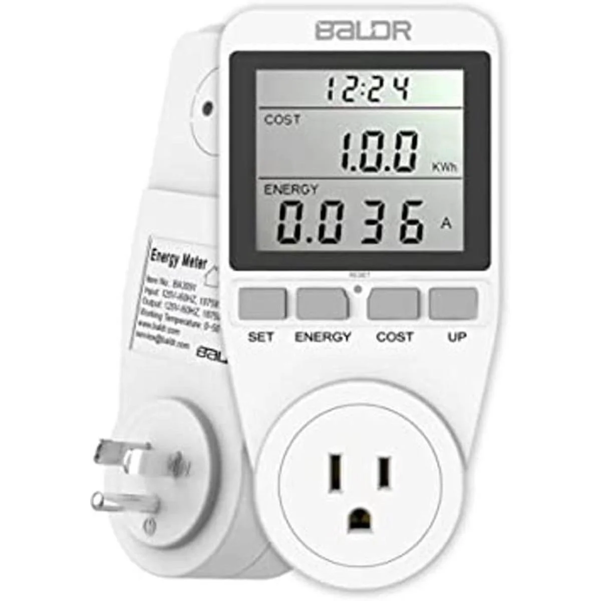 BALDR Monitor de uso de electricidad de Estados Unidos para el hogar Tomas de medidor de kilovatios Medidor de vatios que se conecta a electrodomésticos para medir el uso de energía Monitor de energía para el hogar con pantalla fácil de leer Tarifa única