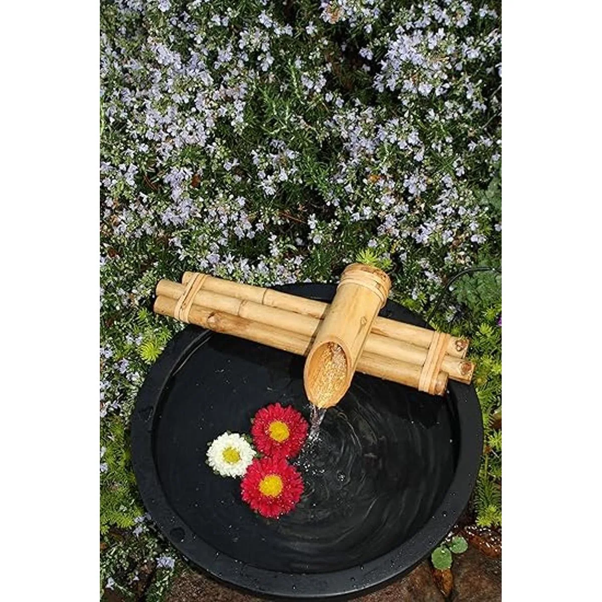 Bamboo Accents Fuente de agua con bomba, fuente para interiores y exteriores, base de estilo de tres brazos de 12 pulgadas de ancho, bambú suave y resistente a las divisiones para crear tu propia fuente Zen contenedor no incluido