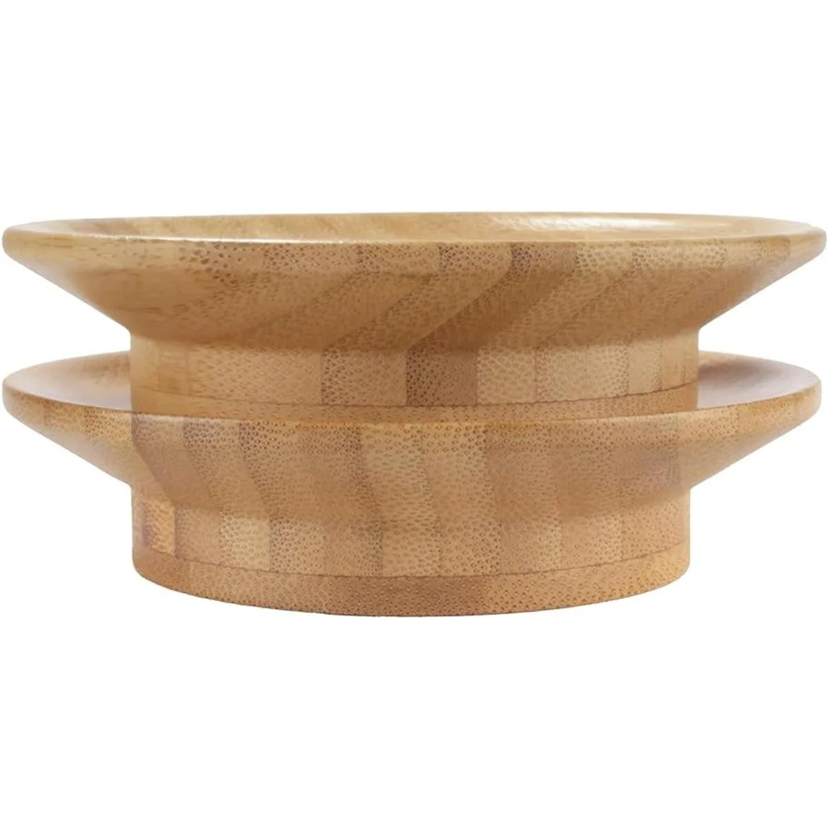 Dimensiones: 4 pulgadas de diámetro, 2.75 pulgadas de anillo inferior y 0.875 pulgadas de alto. Mide el diámetro de tu copa de vino para asegurarte de que estas copas de bambú se ajusten antes de comprar.