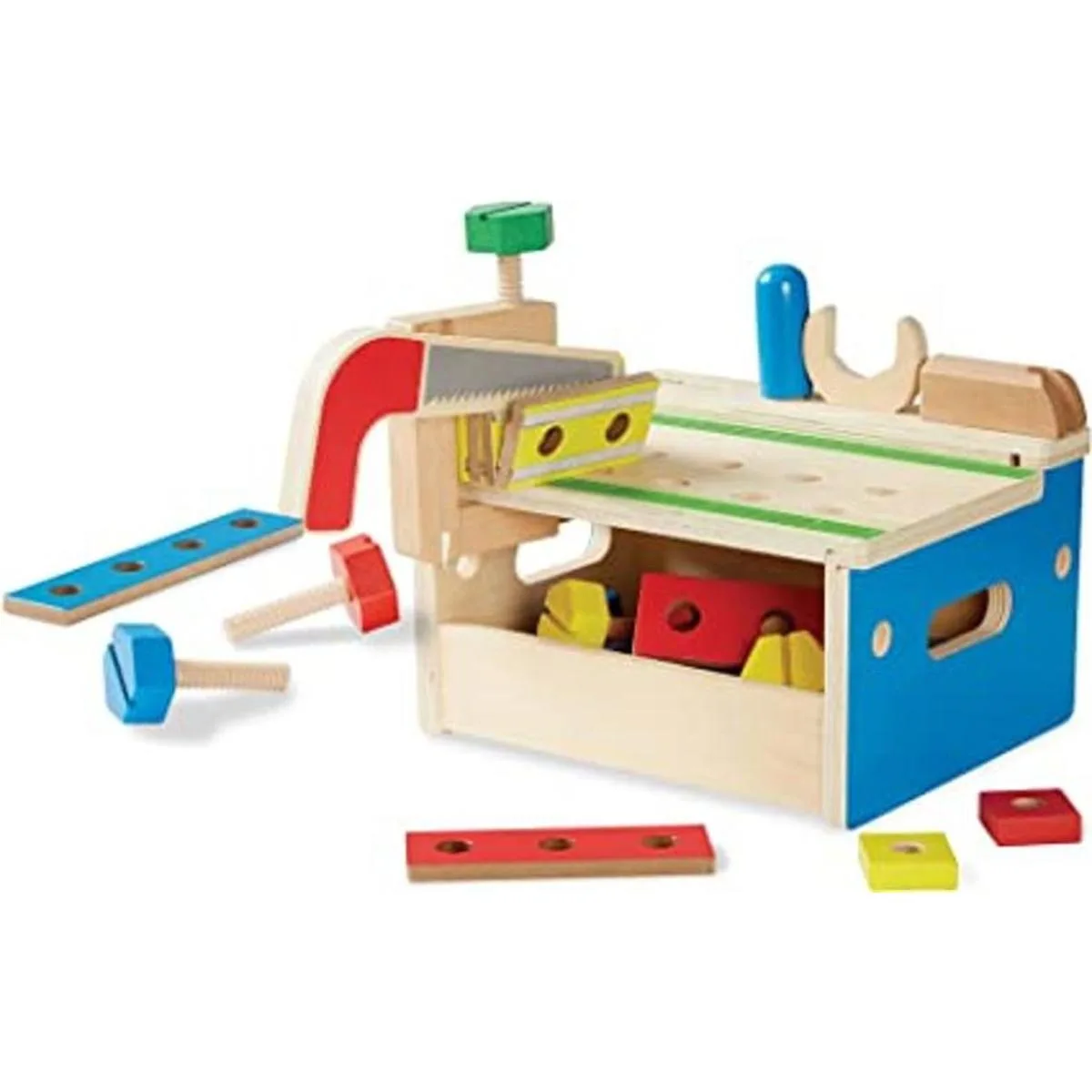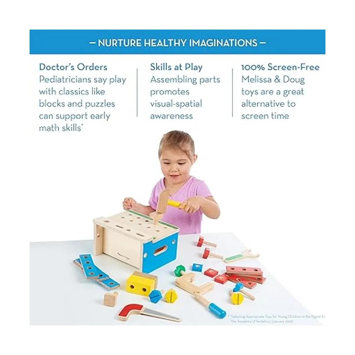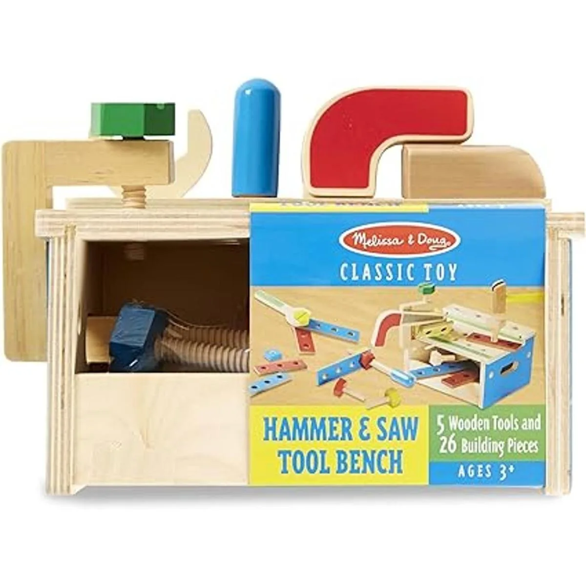 Banco de herramientas con martillo y sierra, set de construcción de madera, de Melissa Doug 32 piezas
