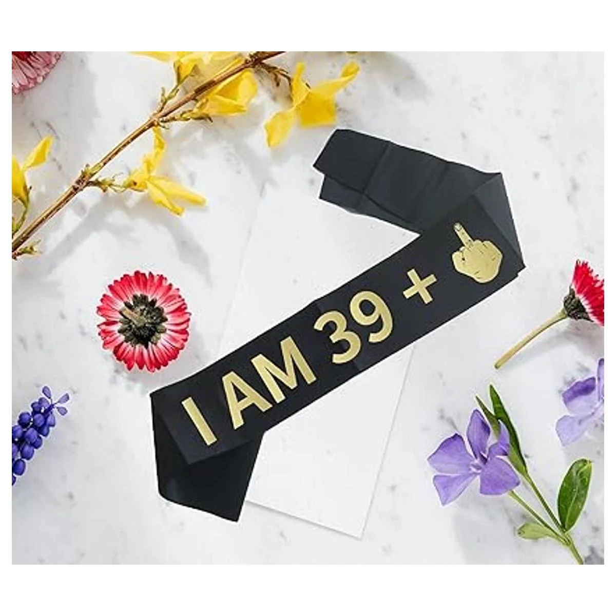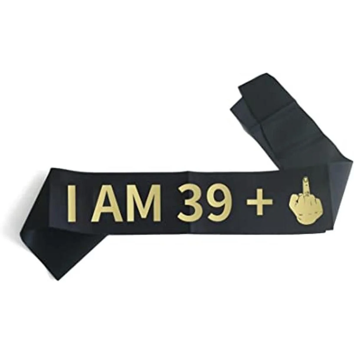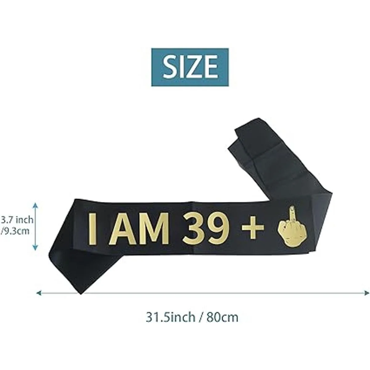 Banda de dedo medio I AM 39 Plus, banda de 40 cumpleaños para mujeres y hombres, regalos divertidos de decoración de cumpleaños de 40 años, suministros de decoración de fiesta de 40 cumpleaños para mujeres y hombres banda negra con letras doradas