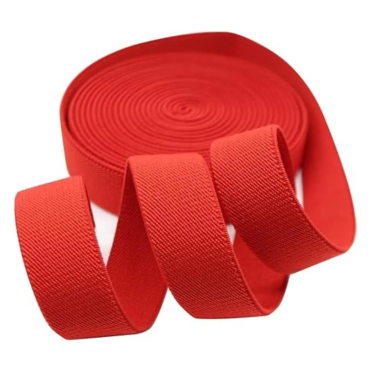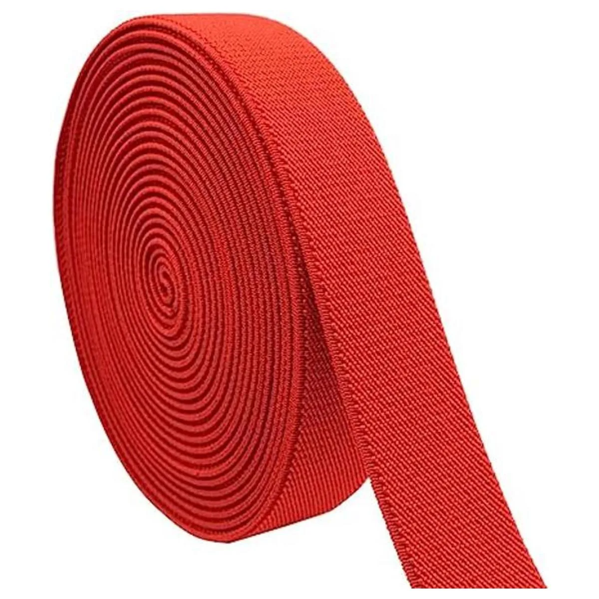 Banda elástica de costura de 1 pulgada por 5 yardas, color rojo, tela de sarga de doble cara tejida elástica