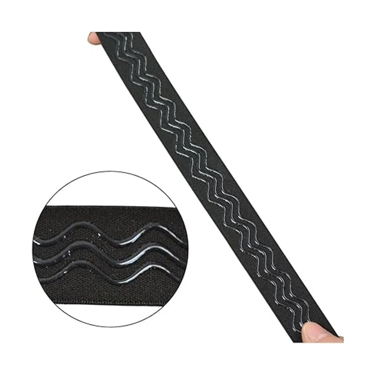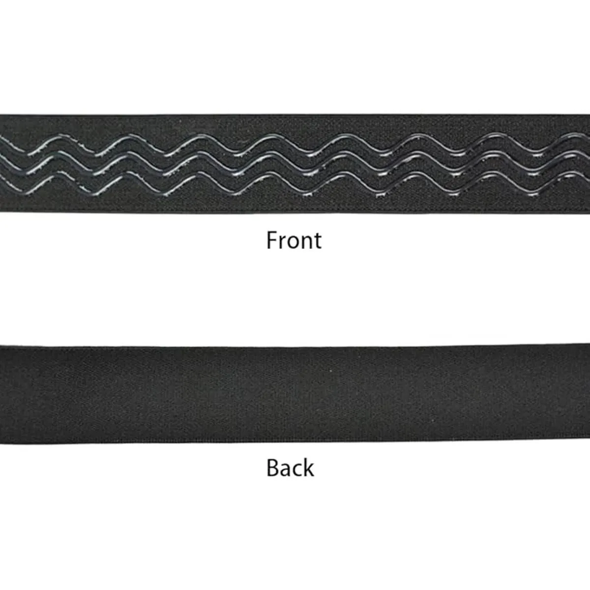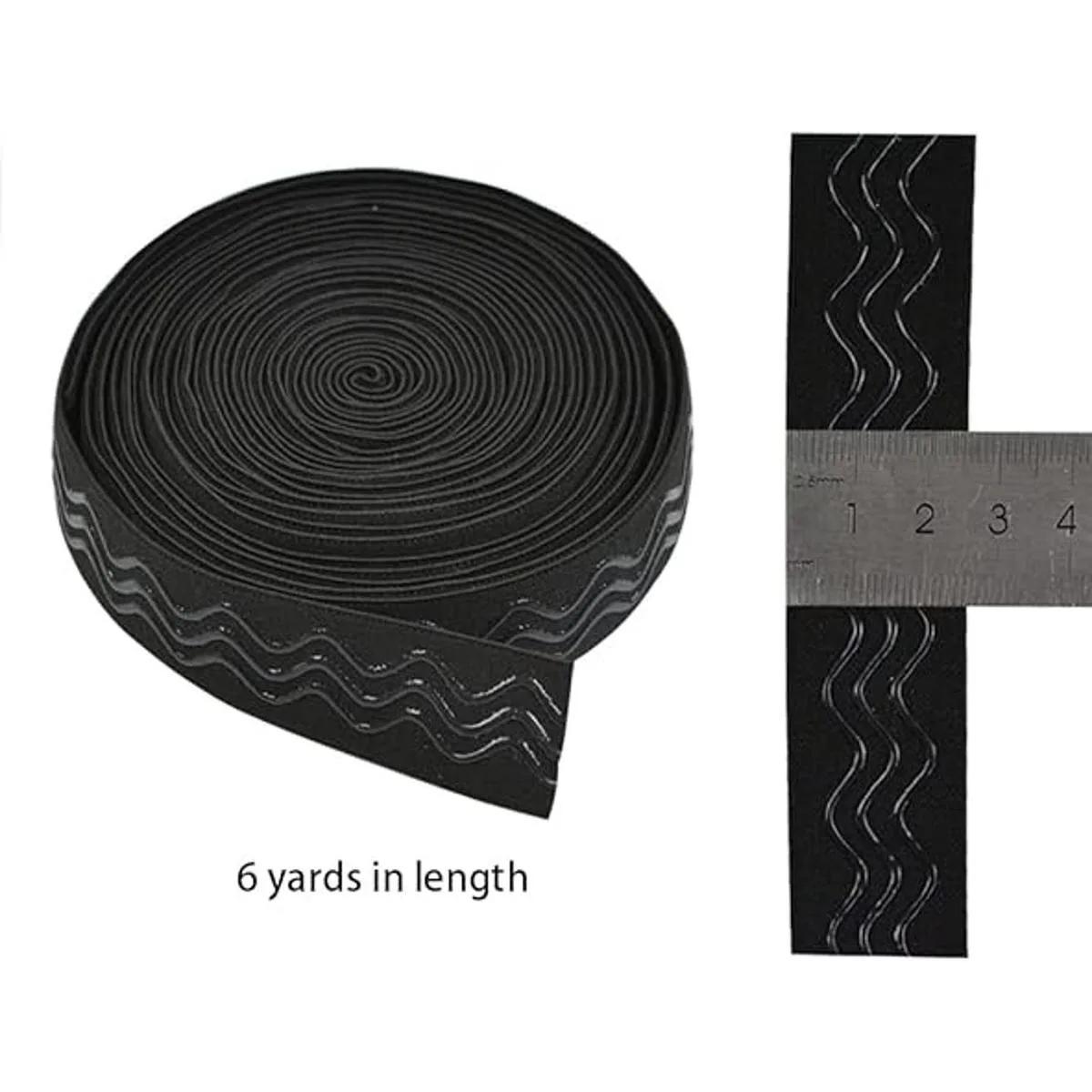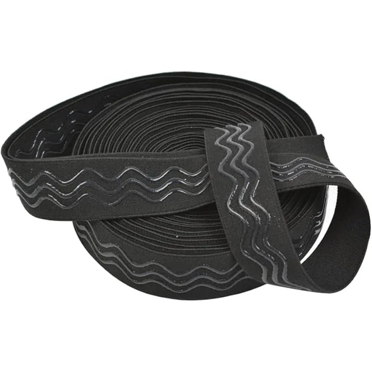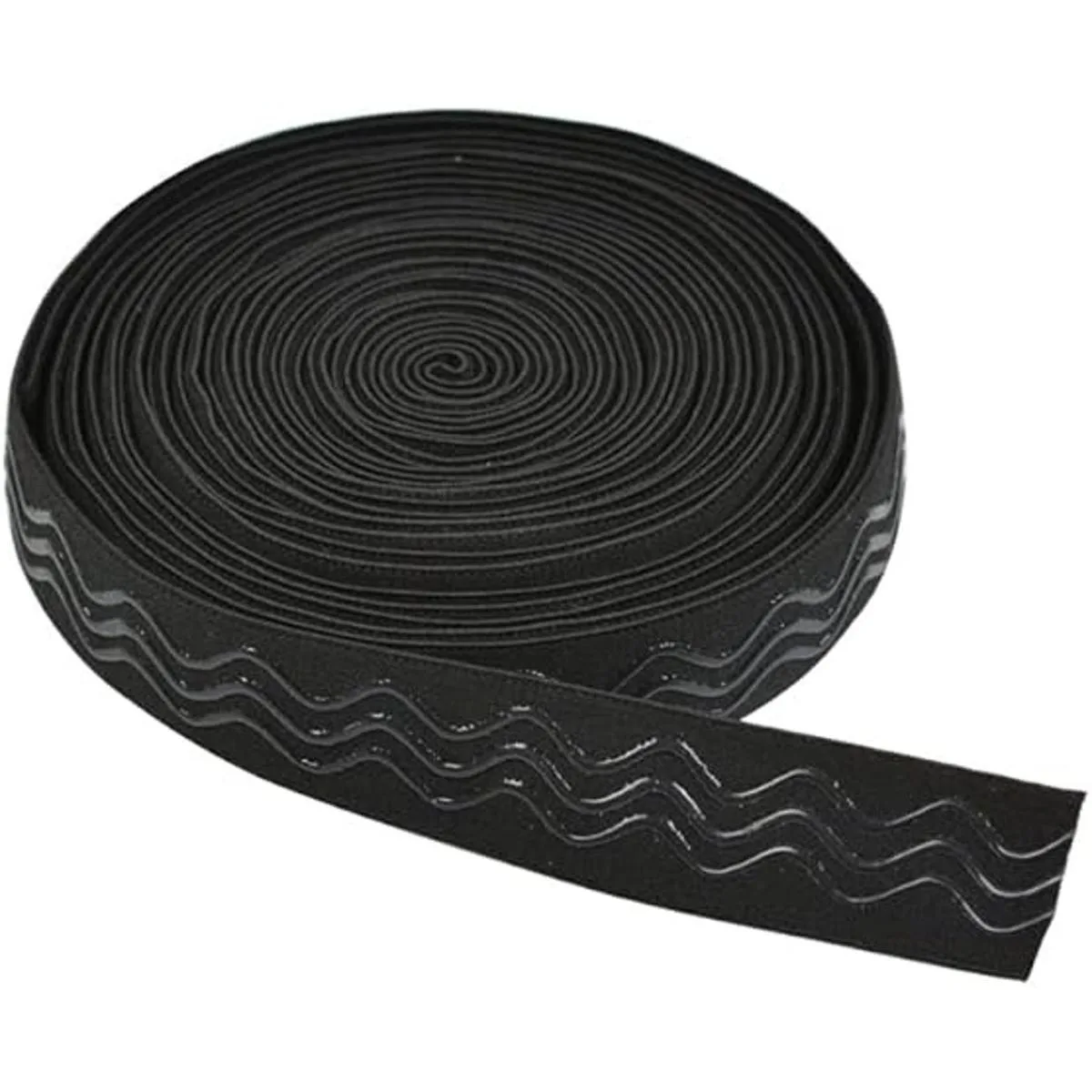 Banda elástica negra antideslizante, banda elástica de costura ondulada de silicona con agarre de silicona para hacer accesorios para peluca, costura de 6 yardas, 1 pulgada