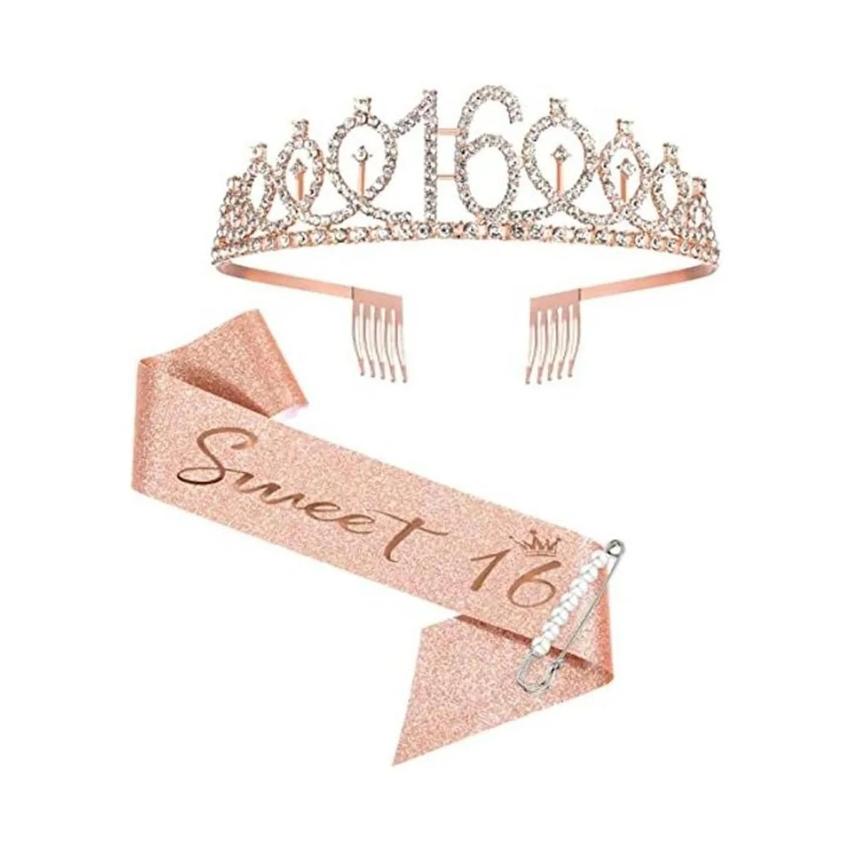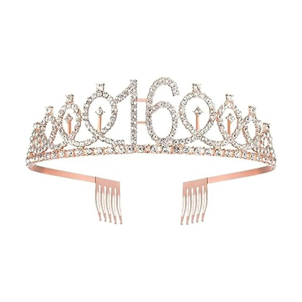 Banda y tiara de cumpleaños número 16 para niñas, corona de banda de cumpleaños de 16 y fabulosa banda y tiara para niñas, regalos de cumpleaños número 16 para suministros de recuerdo de fiesta de cumpleaños número 16