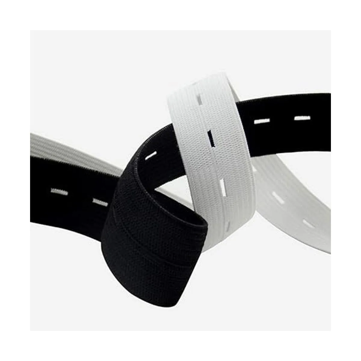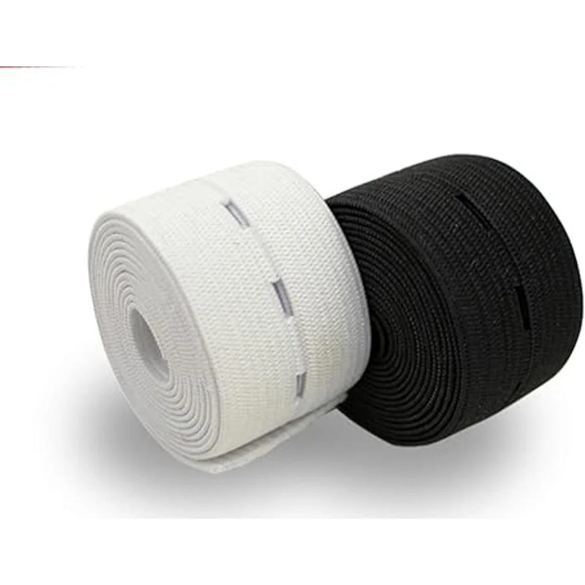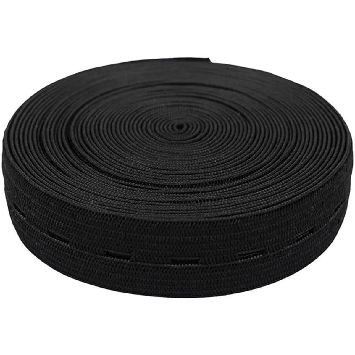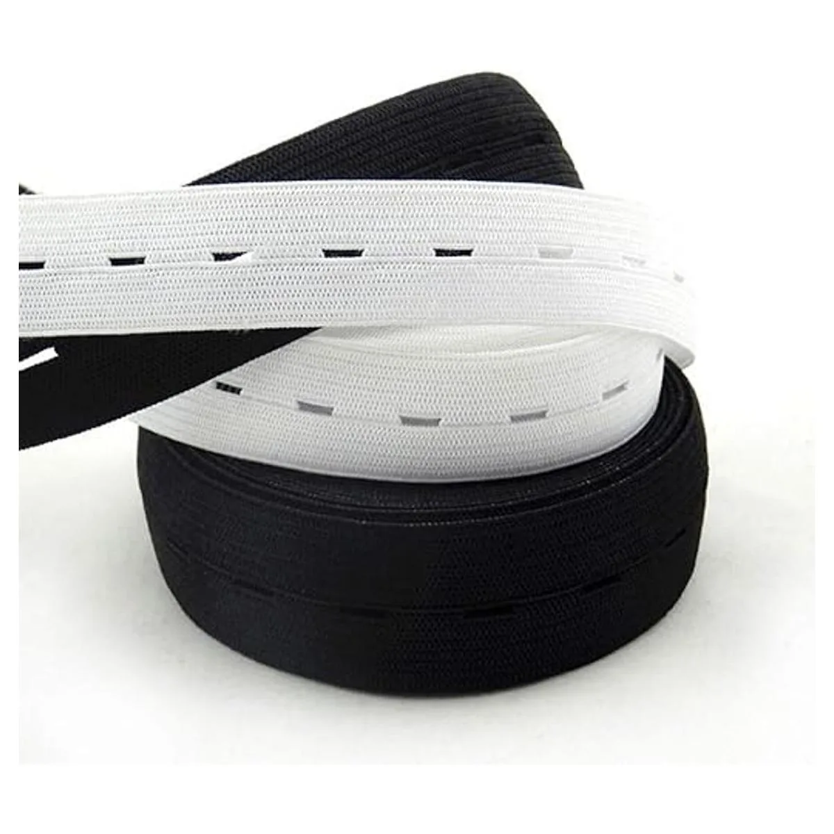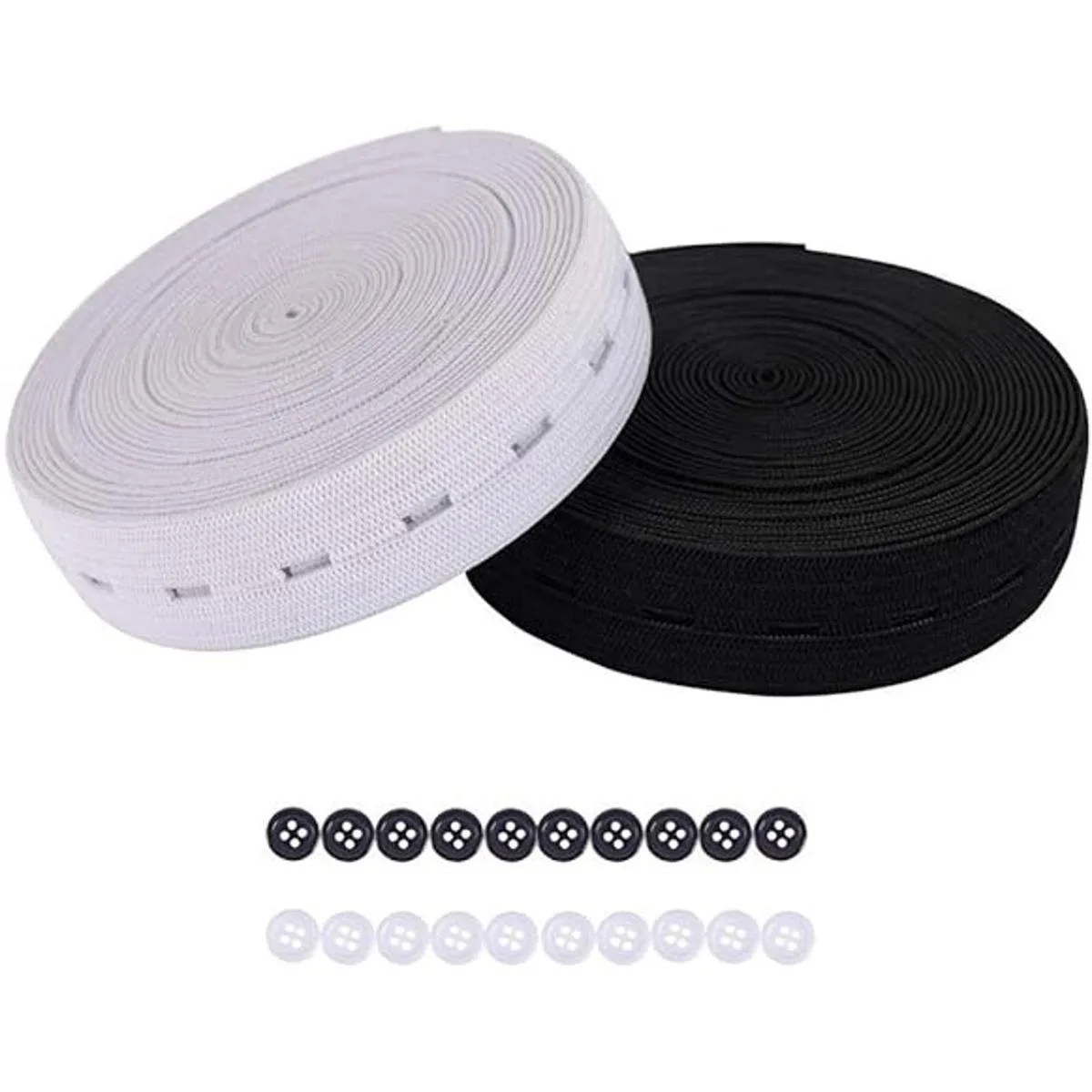 Bandas elásticas de punto con ojales de 0.4 in y 20 botones de resina negro y blanco, cada color es de 45.9 ft y cada color es de 10 unidades.