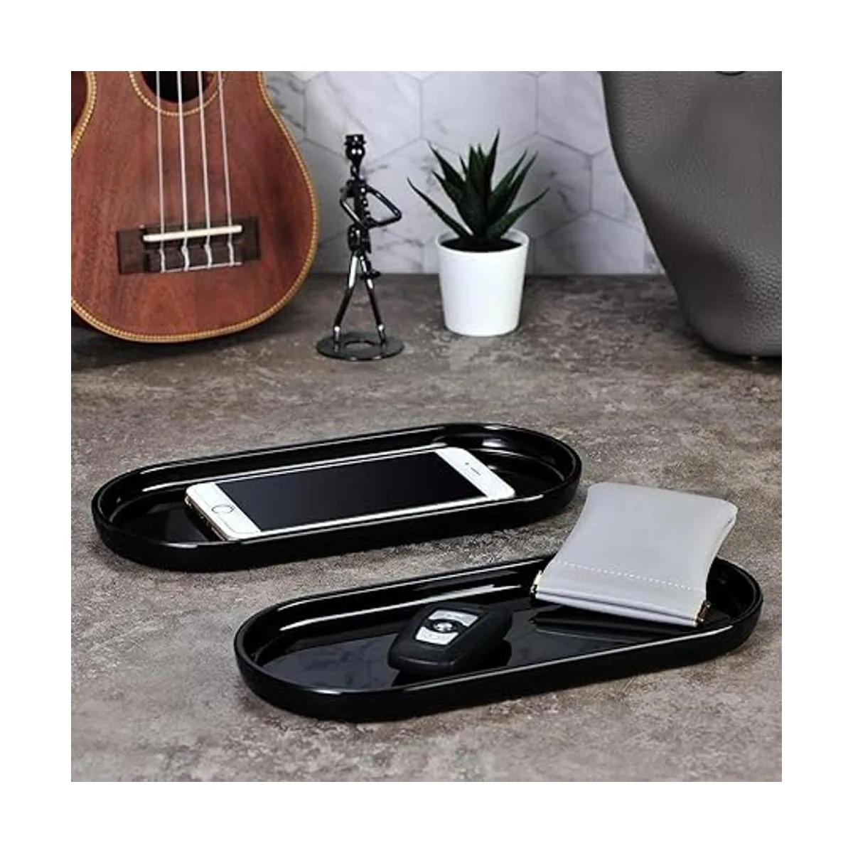 Funcional y versátil: úsalo como una captura para joyas, relojes, llaves o cartera, teléfonos inteligentes; velas; monitores de ejercicio, cambio suelto, perfume y cosméticos, maquillaje, accesorios para el cabello, loción de manos, cremas faciales y mucho más; la bandeja es agradable para poner tus joyas por la noche o en la ducha. Colócalo en tocadores de baño, mesas de entrada o tocadores. Perfecto para hombres y mujeres