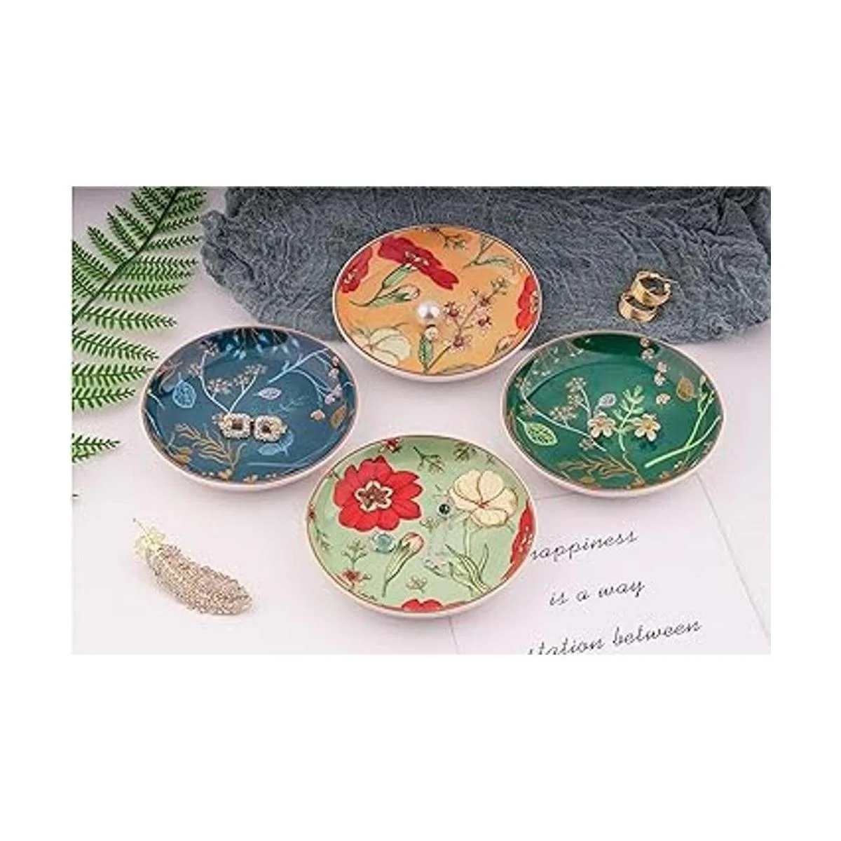 Plato de 4 estilos elegantes: el plato bohemio para anillos tiene 4 estilos impresos en placa para elegir, exótico elegante y elegante. Cada plato de joyería de color tiene su propio estampado de flores único, perfecto para decorar y mostrar tu abalorio. Mide aproximadamente 4.75 x 0.75 pulgadas de alto, 4.34 oz, ligero