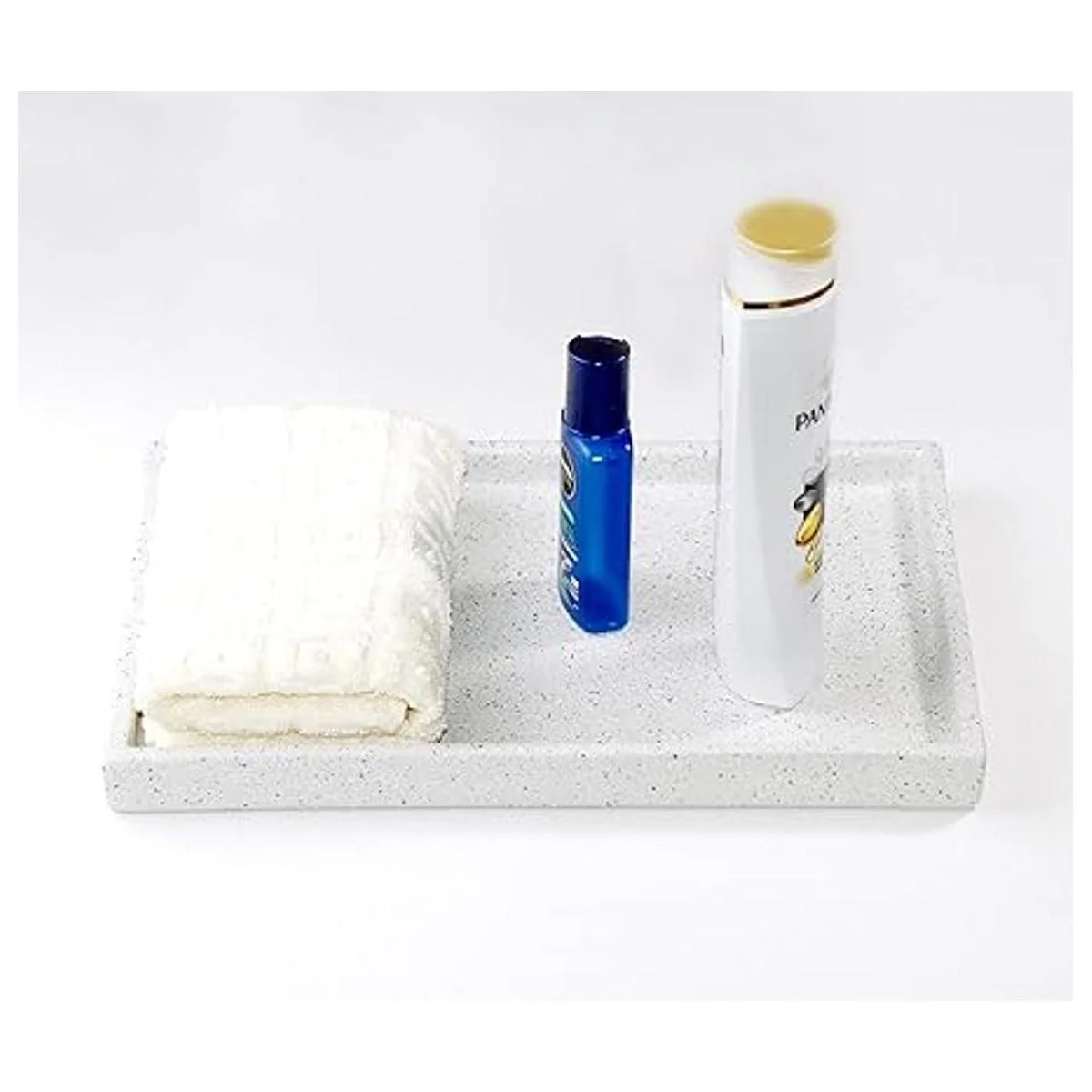 Dale a tus cosas un dulce hogar: la bandeja de baño de cerámica con decoración de piedra puede ayudarte a ahorrar espacio, organizar perfectamente y acceder fácilmente a tus cosas. Como tu perfume, champú, botellas de loción, cosméticos, toallas, joyas y otros artículos esenciales de tocador, sostiene tus artículos sin ocupar demasiado espacio en tu tocador, dale a tus cosas un hogar bien dulce.