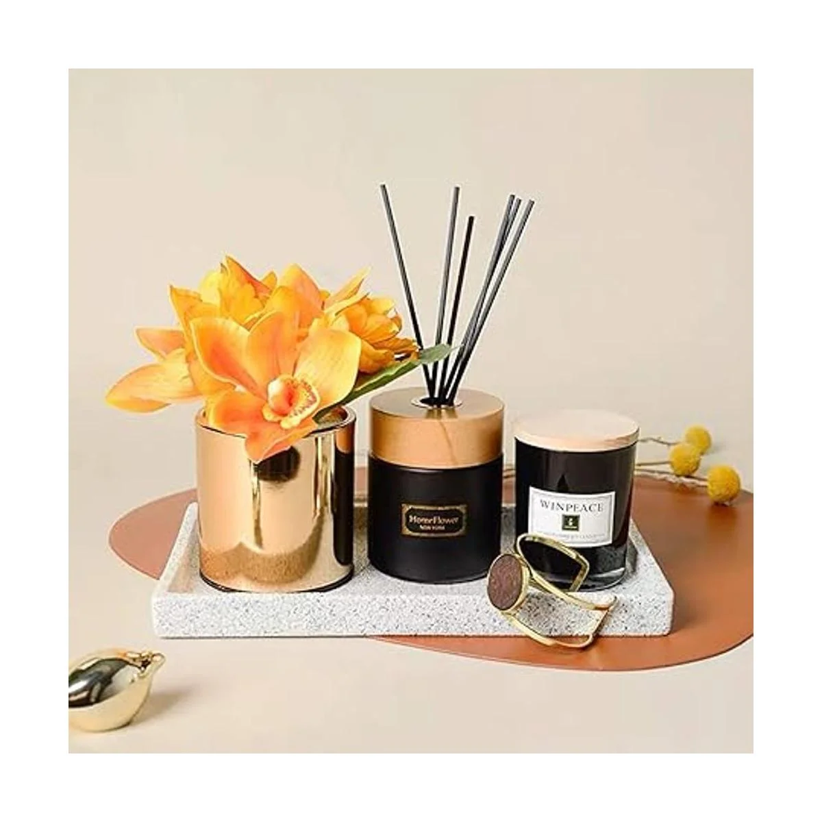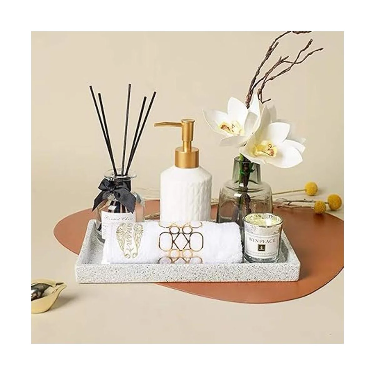 Bandeja de tocador de cerámica de alta calidad: esta bandeja de tocador decorativa de piedra está hecha de esmalte de impresión de piedra premium, con esquinas seguras, resistente y duradera, resistente al agua, a prueba de arañazos y fácil de limpiar. Una idea de regalo perfecta para tus amigos o familiares en el día de San Valentín, día de la madre, boda, día de inauguración de la casa, Navidad, Año Nuevo.