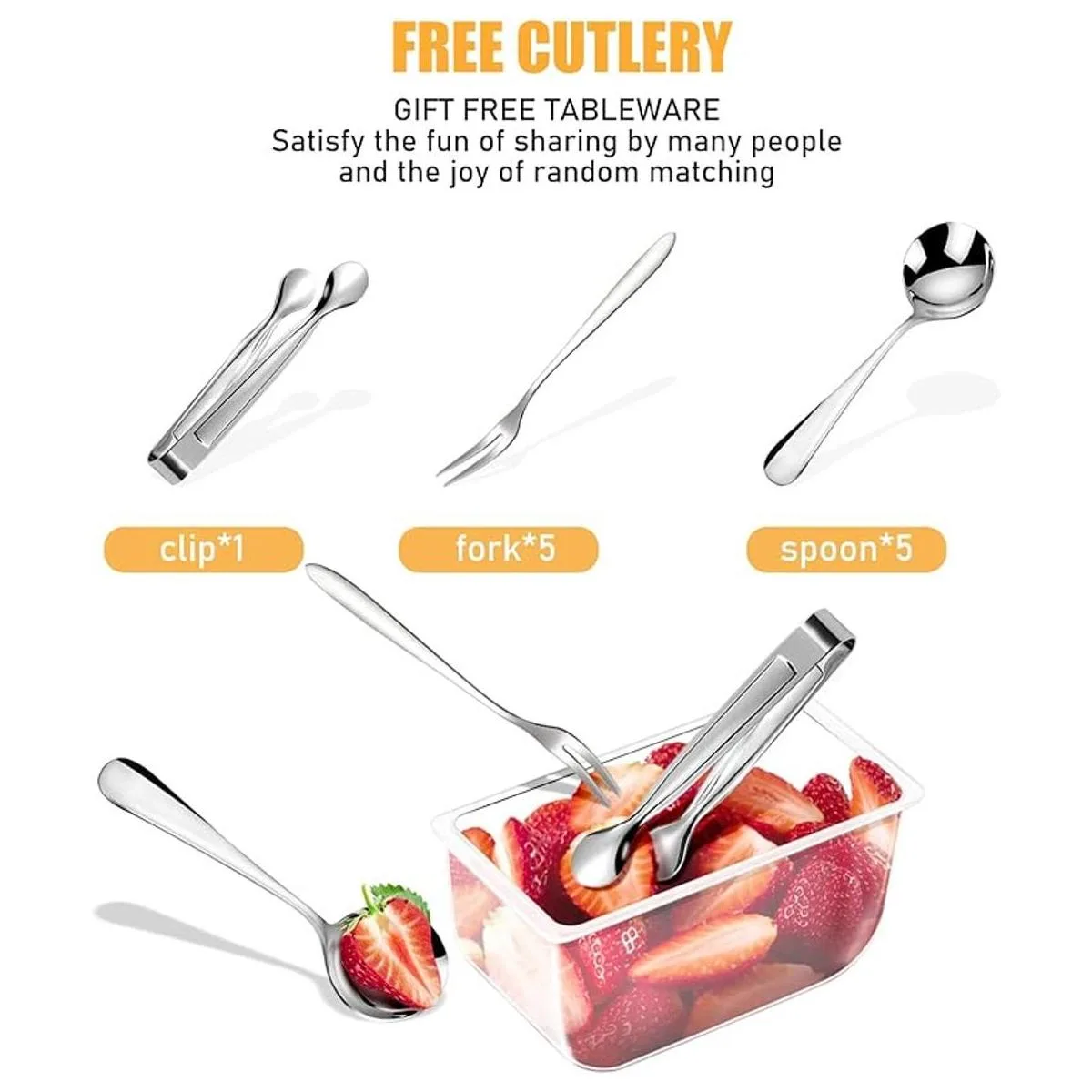 Bandeja de condimentos, bandeja de frutas, bandeja de ensalada, bandeja cubierta con 5 compartimentos desmontables, 5 tenedores, 5 cucharas y 1 clip
