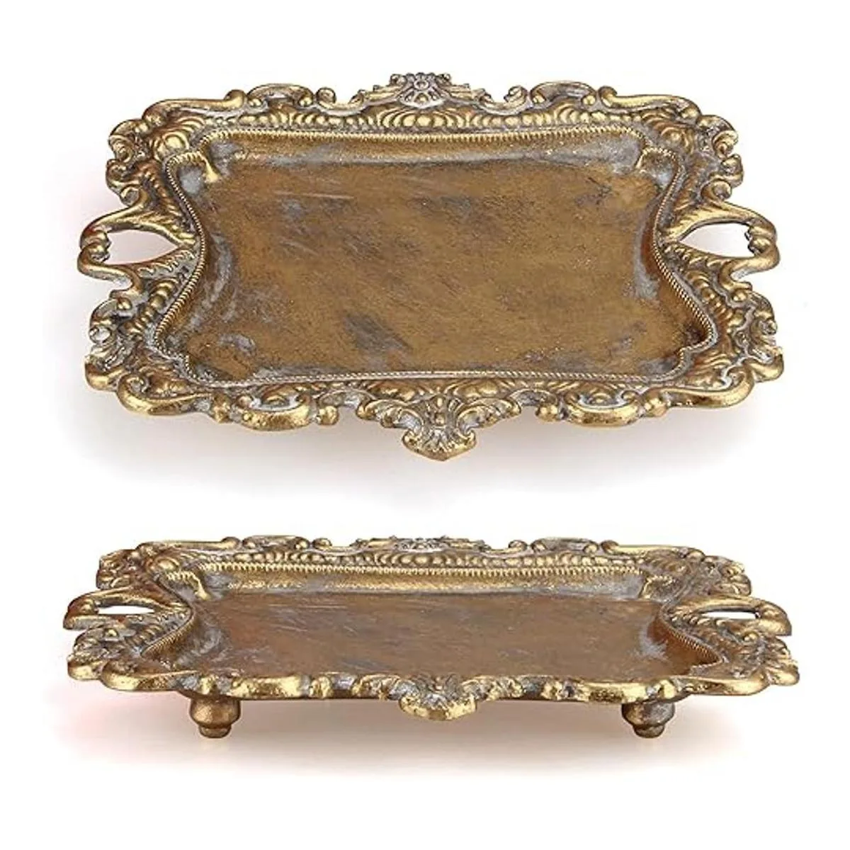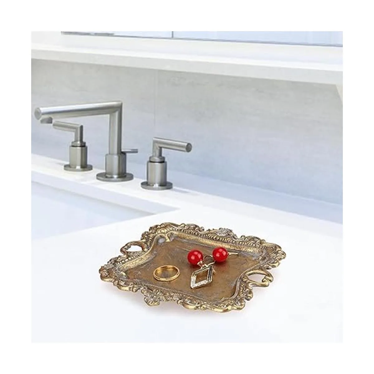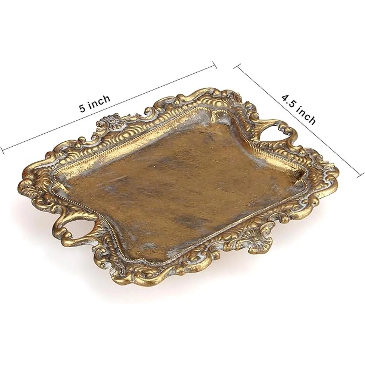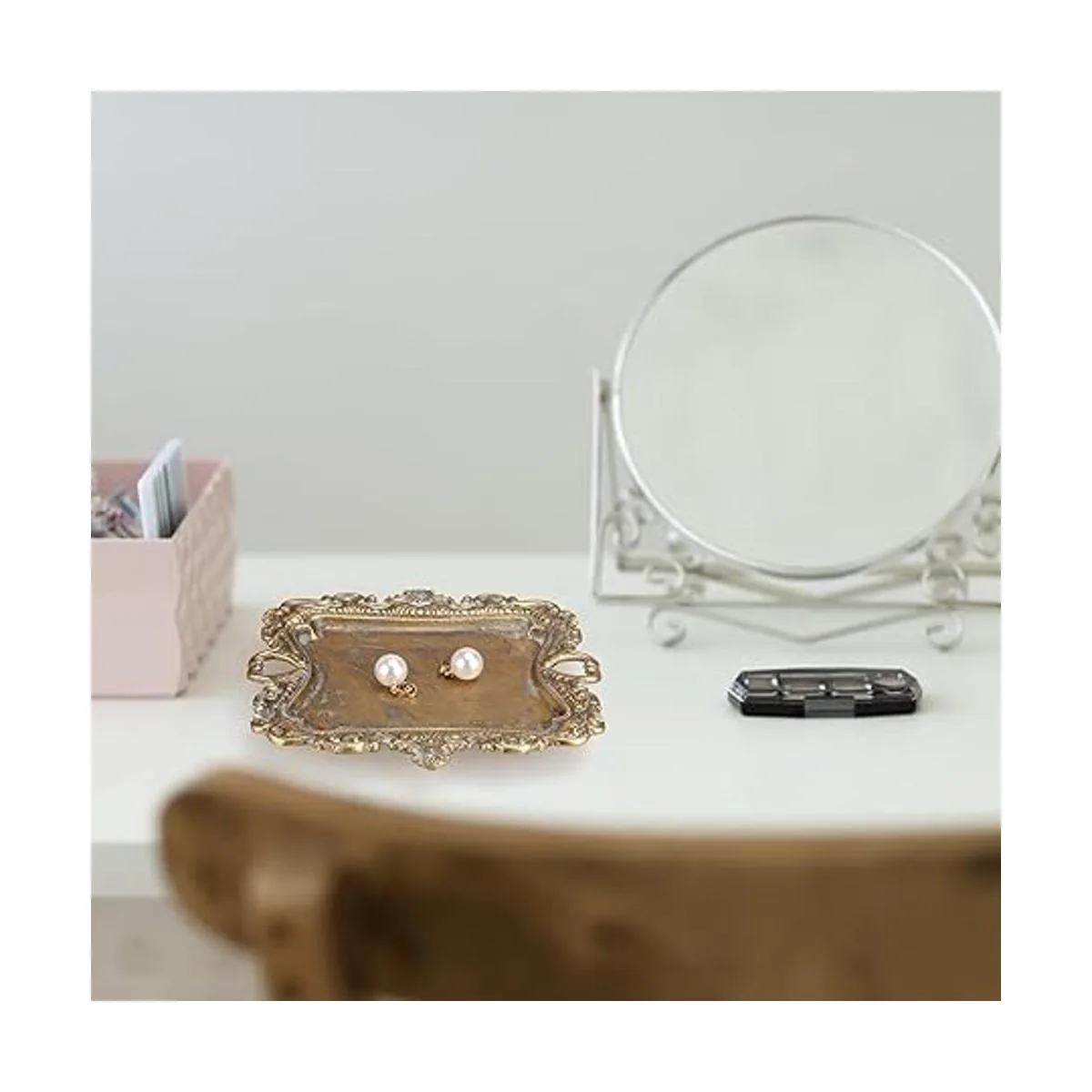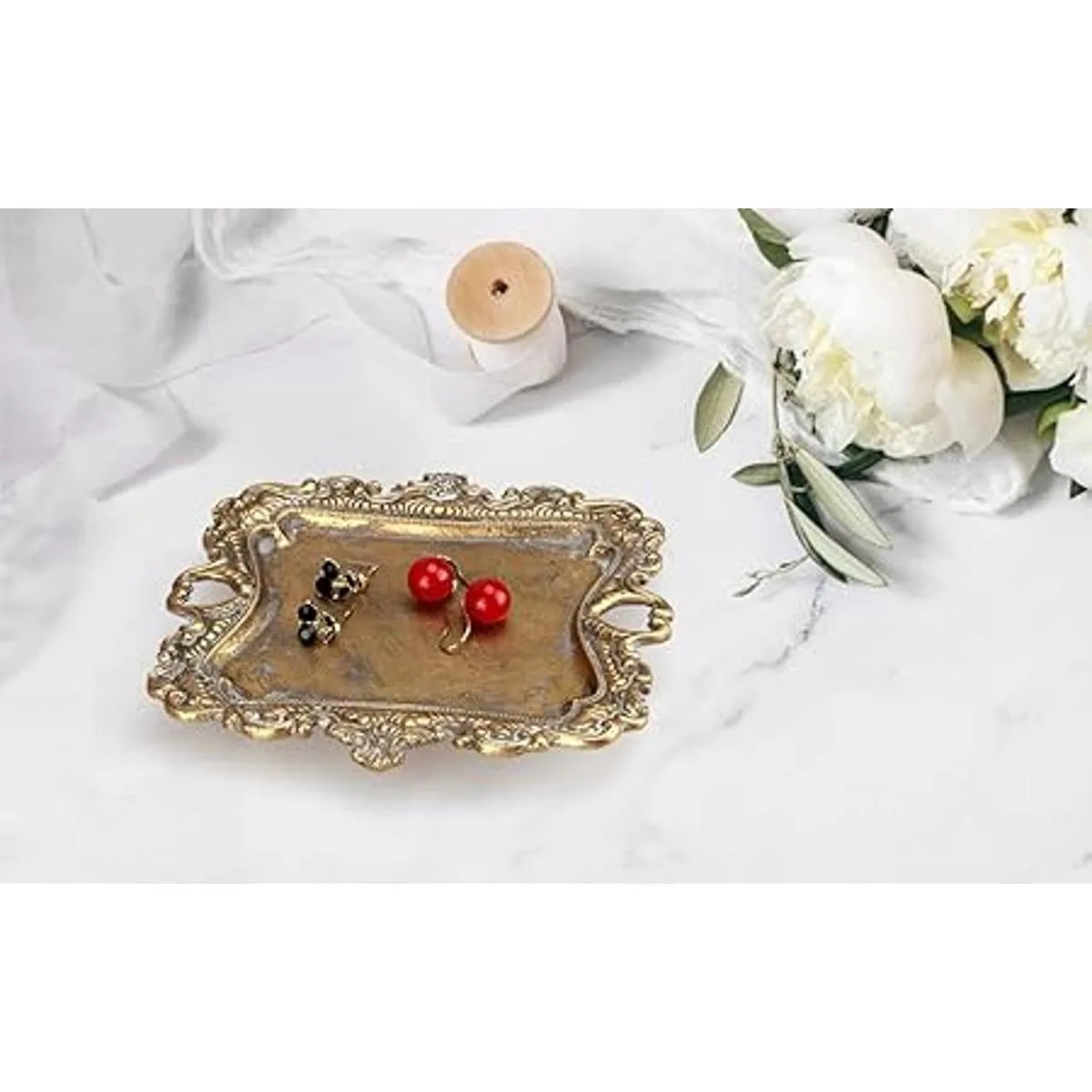 Bandeja de joyería pequeña de oro vintage de compromiso para boda, plato de anillo rústico, plato de aretes antiguos, bandeja de collar con bonito plato de baratija, regalo decorativo para pequeñas joyas
