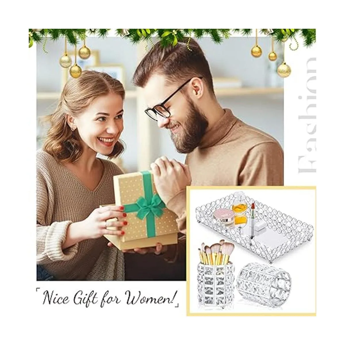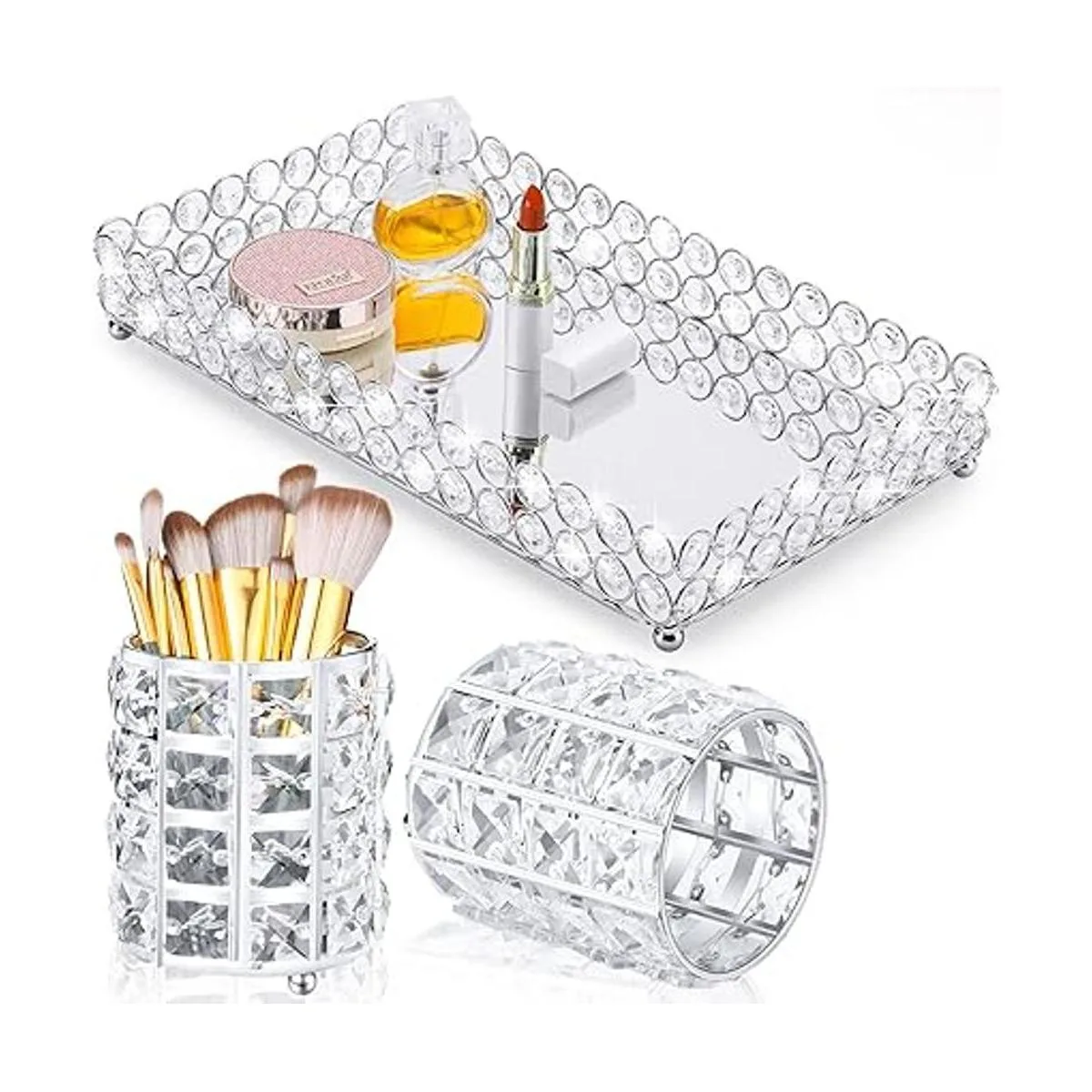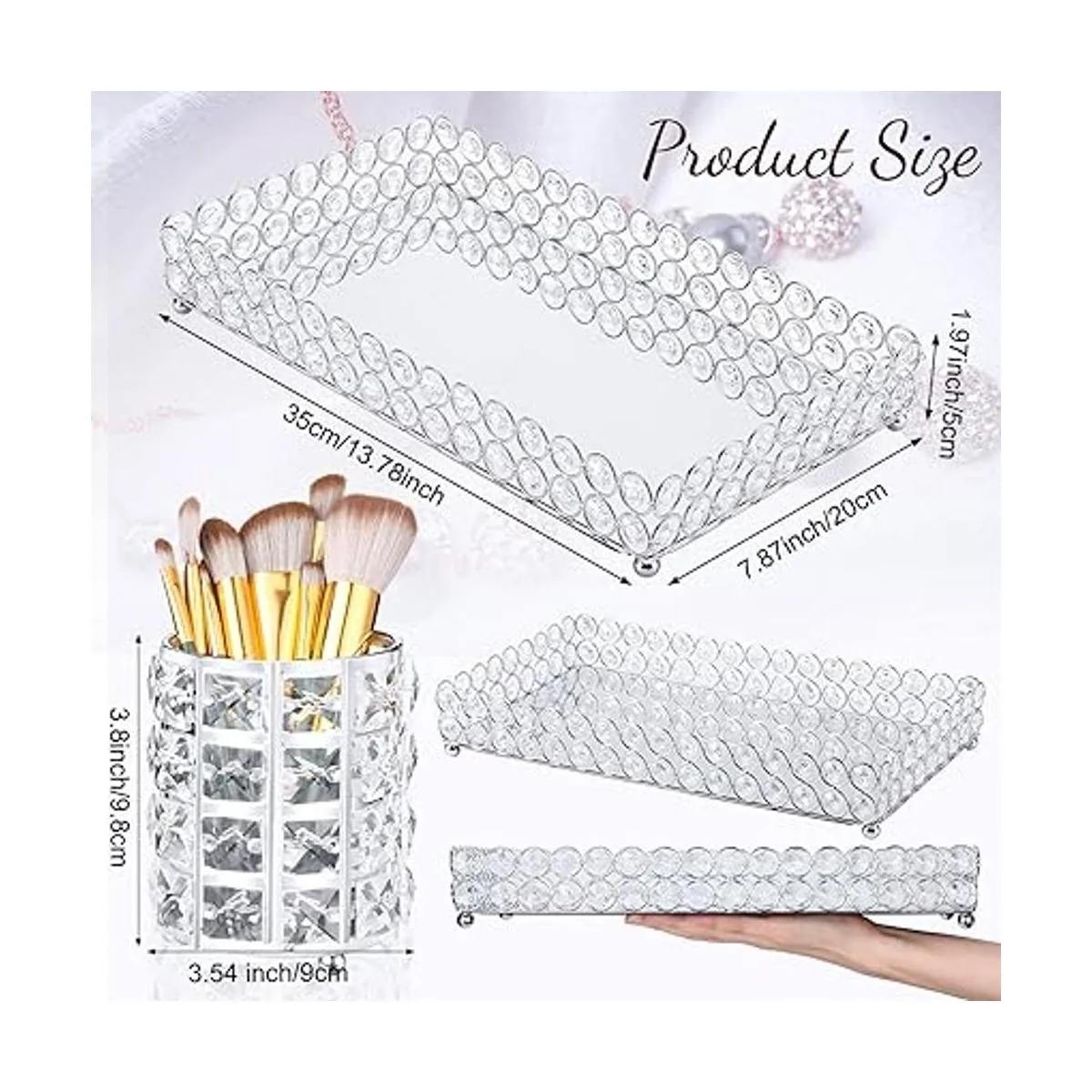 Material de calidad y fiable: estos accesorios de tocador para mujer están hechos de material de metal y decorados con cristales artificiales, con el peso adecuado, pueden mantenerse firmemente en la encimera y no se caen fácilmente