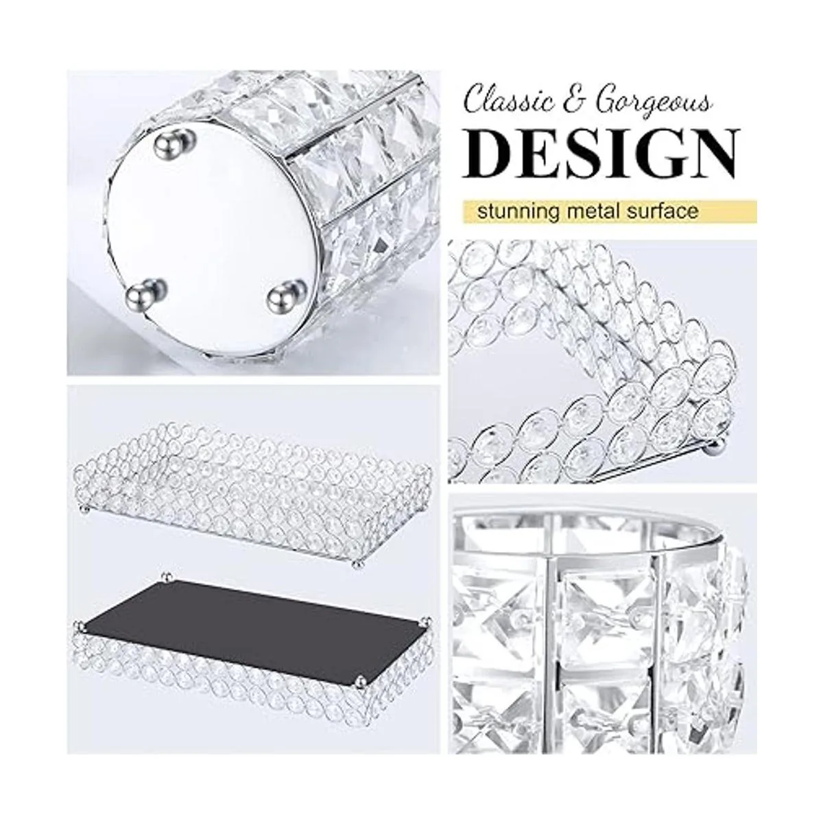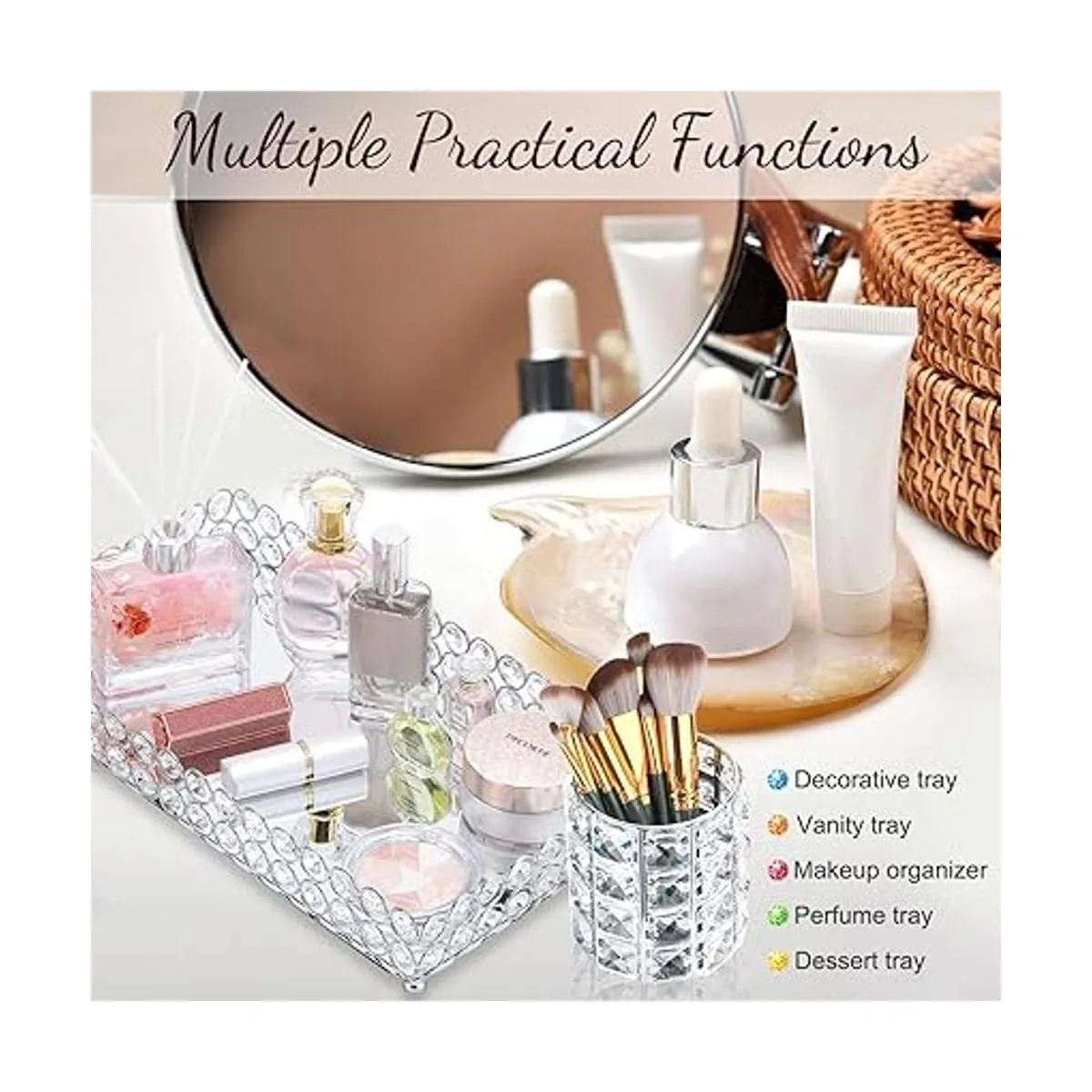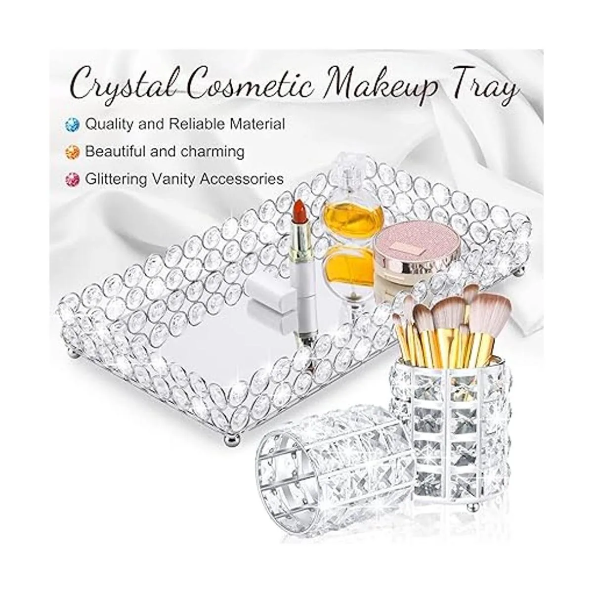 Material de calidad y fiable: estos accesorios de tocador para mujer están hechos de material de metal y decorados con cristales artificiales, con el peso adecuado, pueden mantenerse firmemente en la encimera y no se caen fácilmente