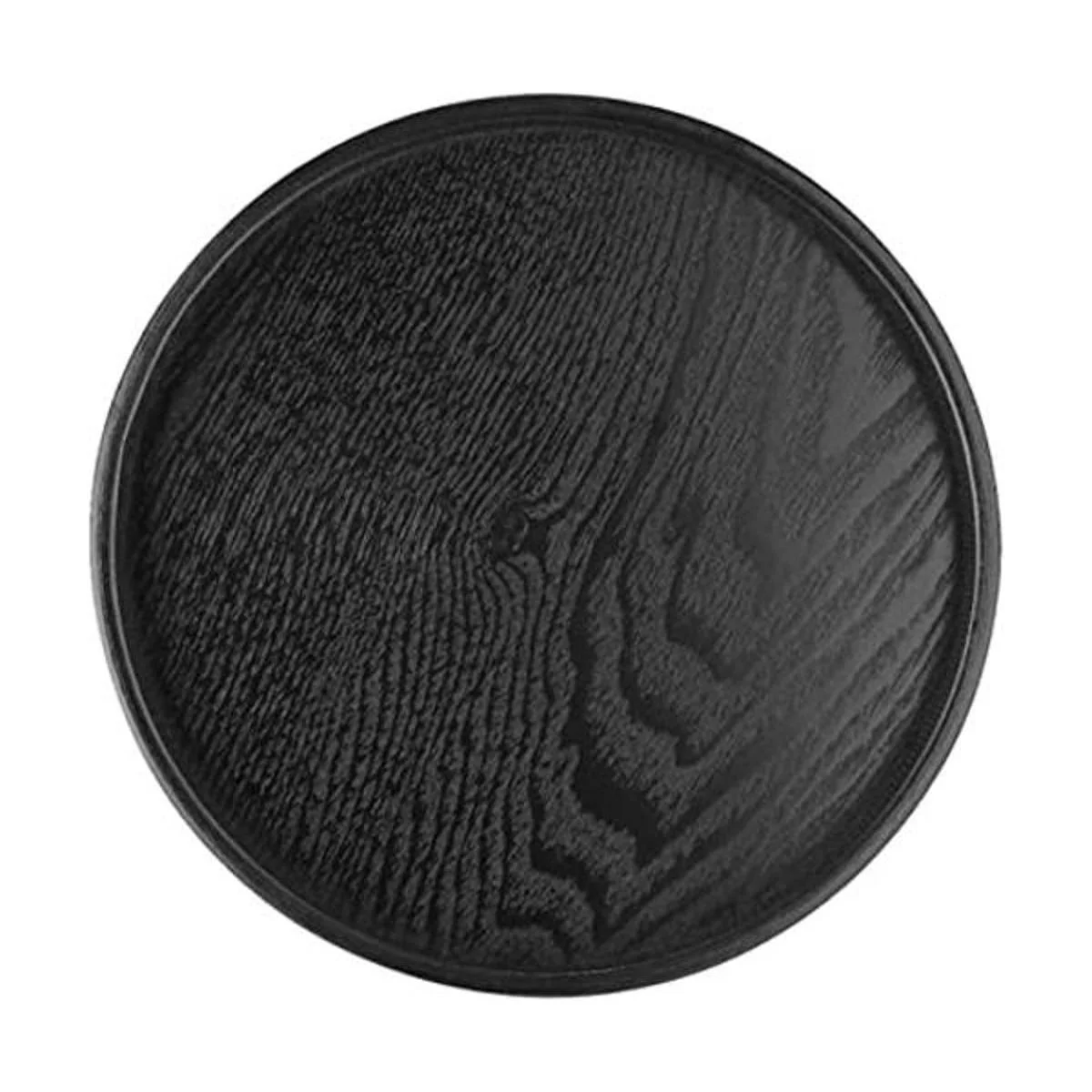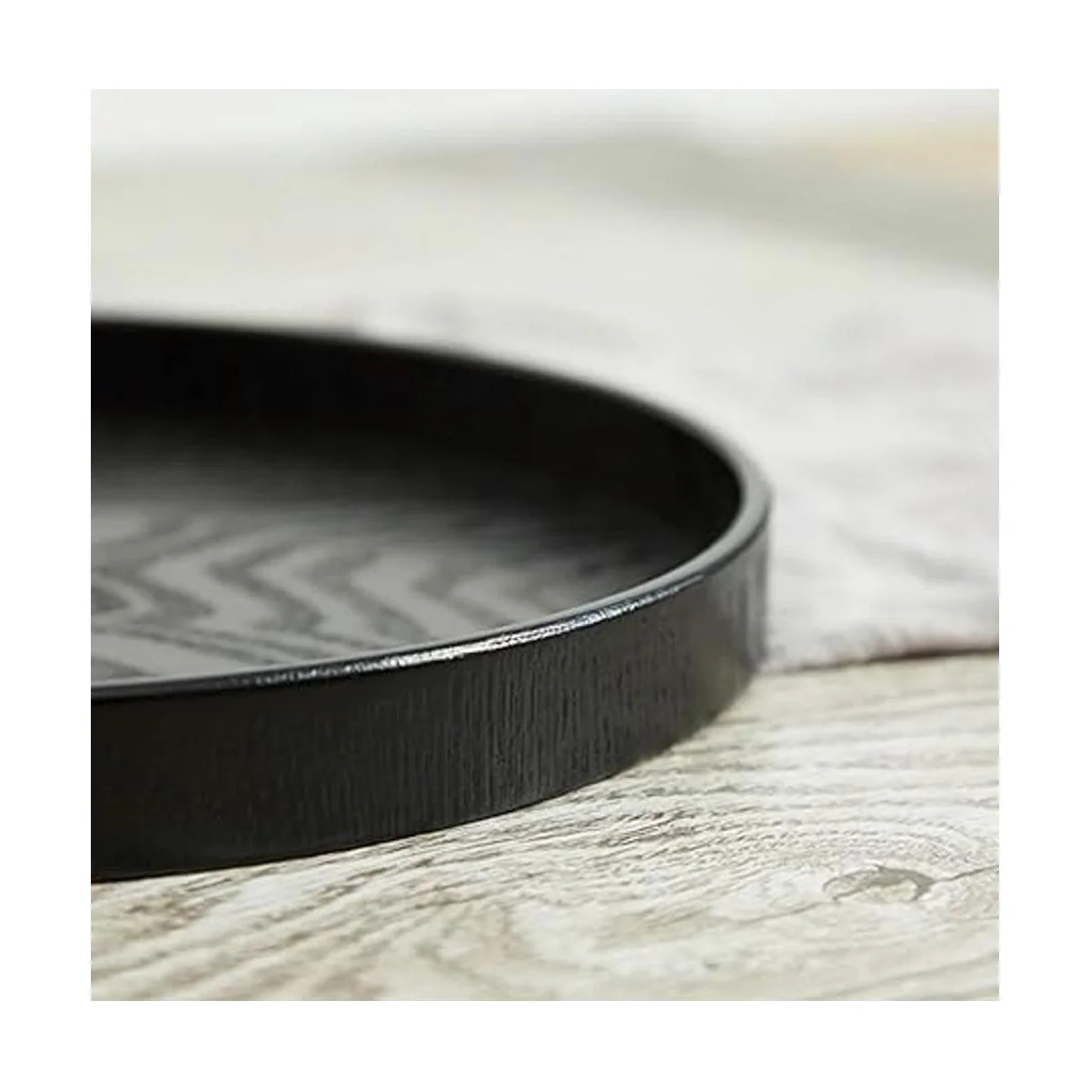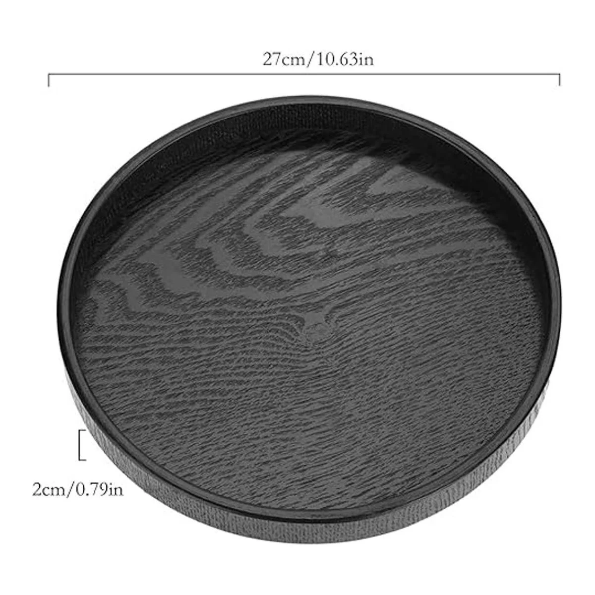 Bandeja de servir de madera maciza, plato redondo antideslizante para té, café, bandeja de servir comidas con bordes elevados, para el hogar, cocina, restaurante 10.6 pulgadas, negro