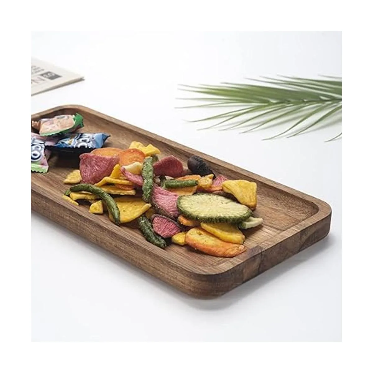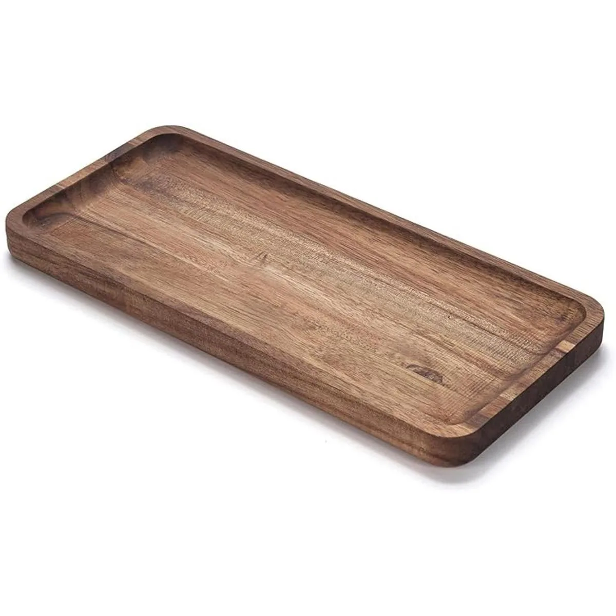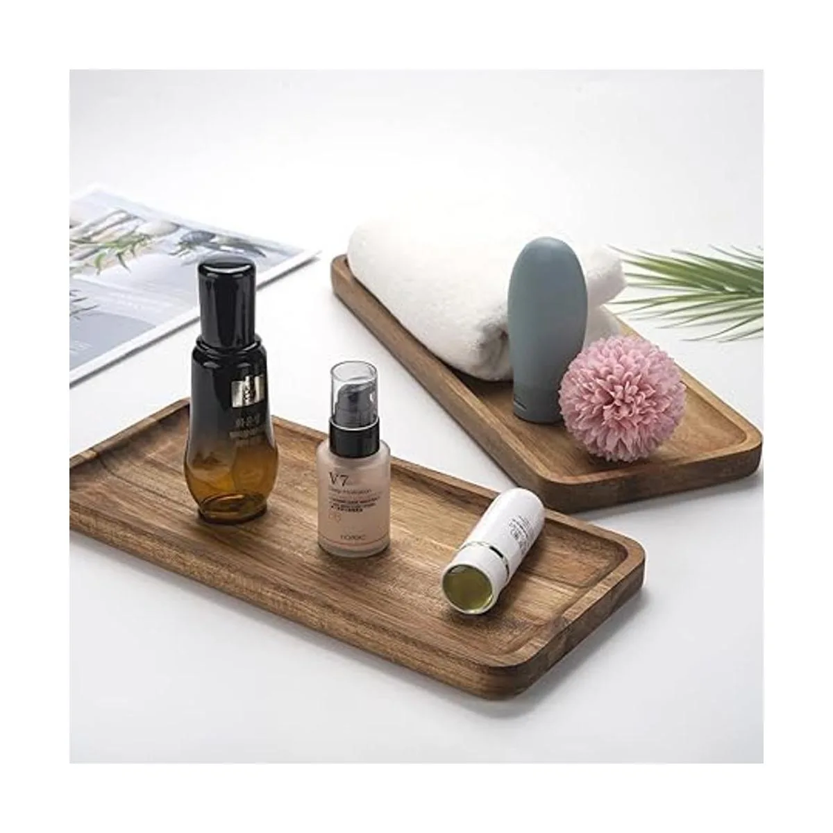 Bandeja de tocador de baño, bandeja de mostrador de madera de acacia, bandeja de tanque de inodoro, tabla de servir aperitivos de charcutería, 13.8 x 5.5 x 0.8 pulgadas