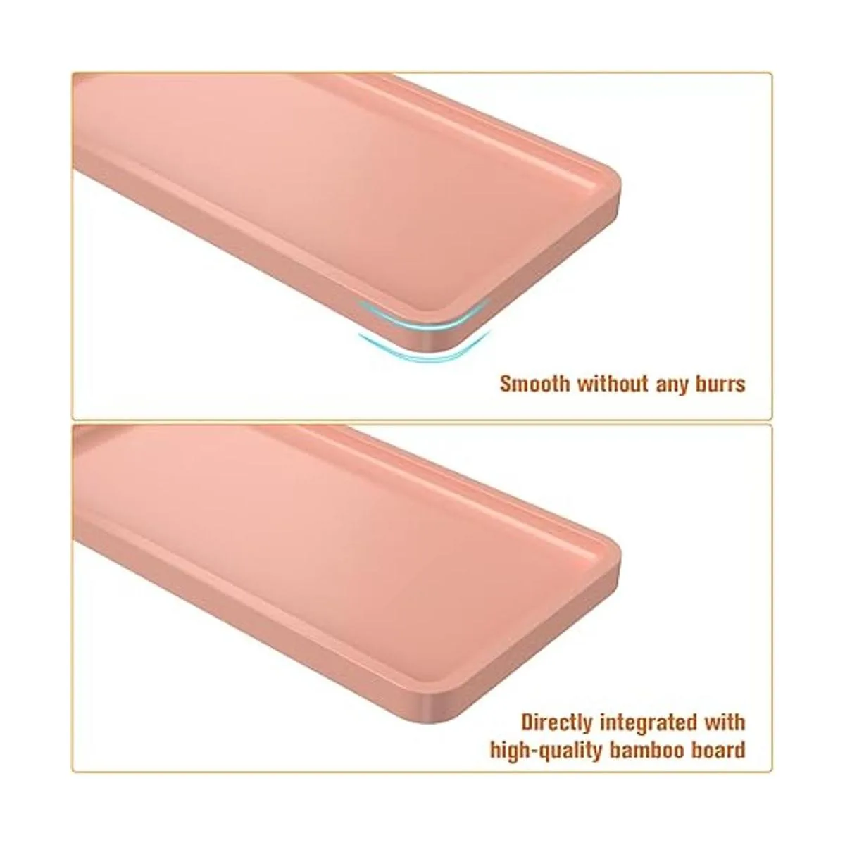 Diseño de alfombrilla antideslizante y fácil de cuidar: la bandeja de piel de encimera de baño tiene pequeñas cubiertas de goma en la parte inferior, ya no te preocupes por deslizarse y rayar la encimera; la pequeña bandeja de baño es fácil de limpiar, simplemente limpia con un paño húmedo limpio
