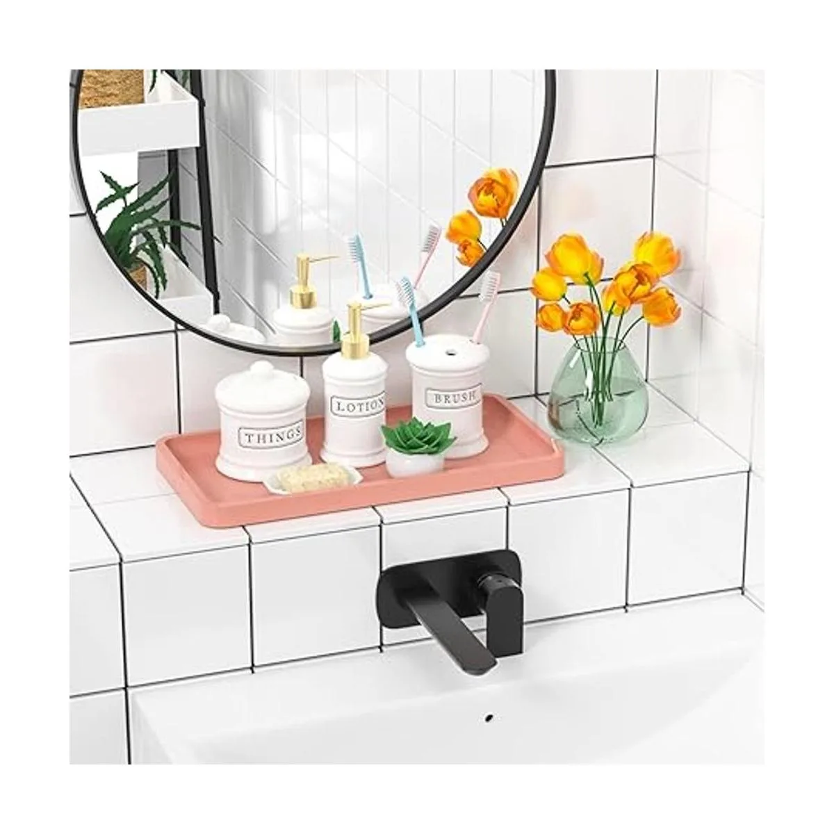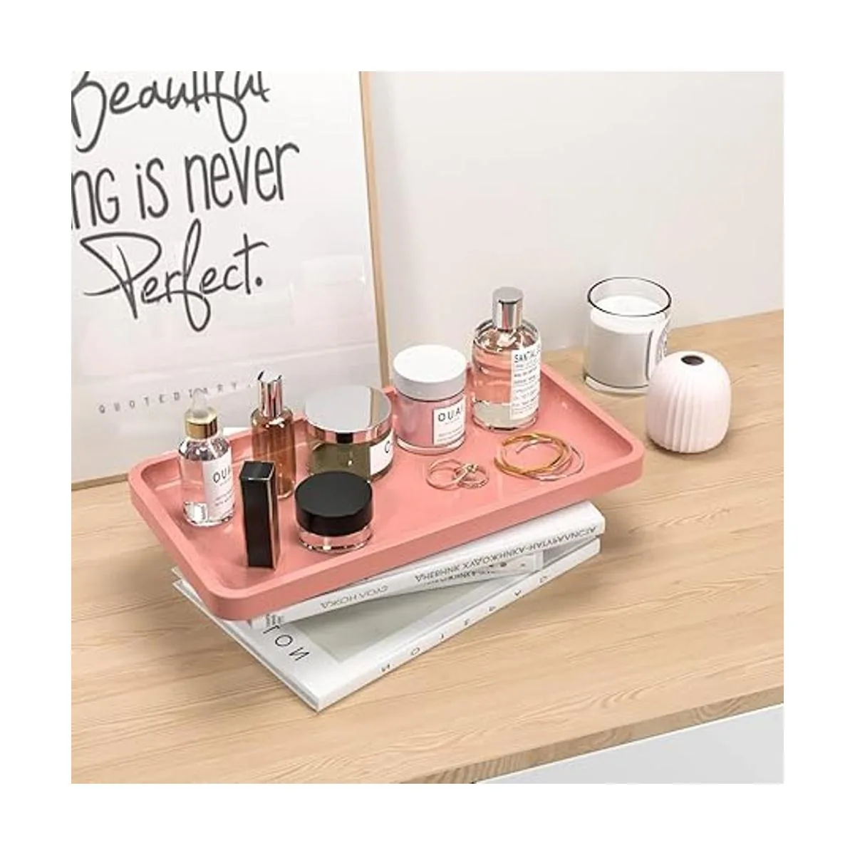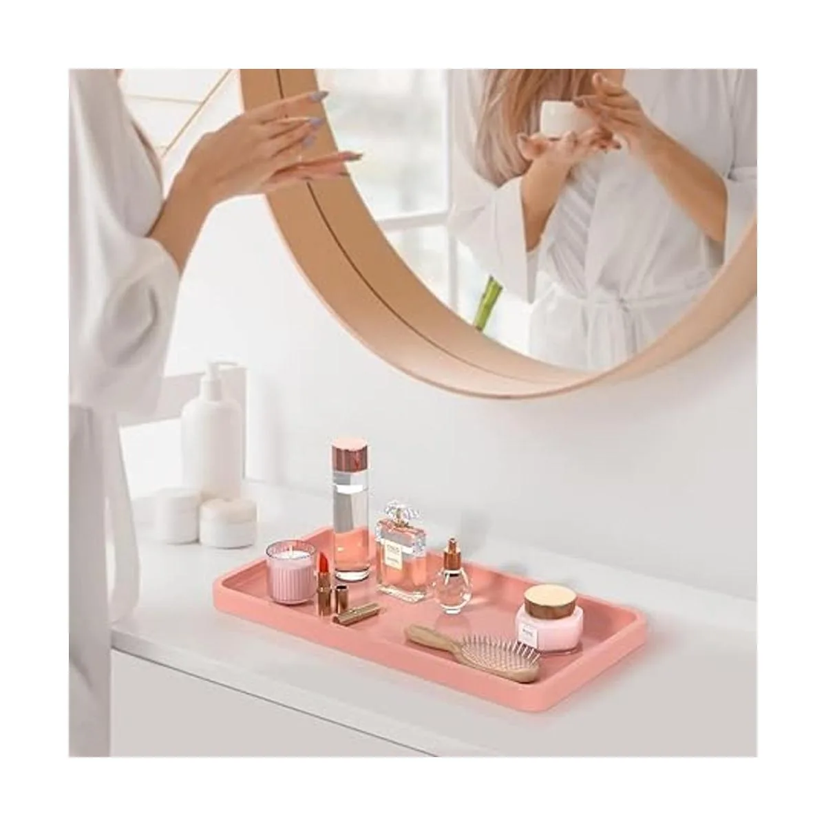 Cómodo de usar: bandeja de tocador de fácil acceso sin tener que ordenar rutinariamente las cosas, y suficiente pared lateral para mantener todo junto en un solo lugar