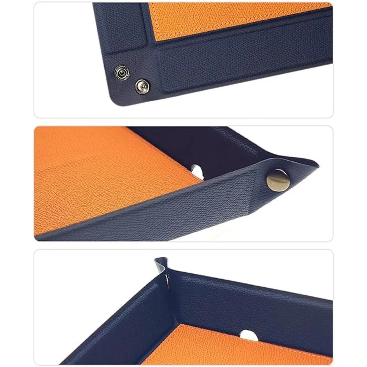 Ligero y portátil: con 4 remaches a presión en las esquinas, cómodo de usar y lo suficientemente ligero como para ponerlo en tu bolsa. Nuestra bandeja de escritorio está hecha con cuero sintético, elegante y elegante, duradera y duradera. La artesanía superior lo traduce en un hermoso regalo para que todos disfruten.