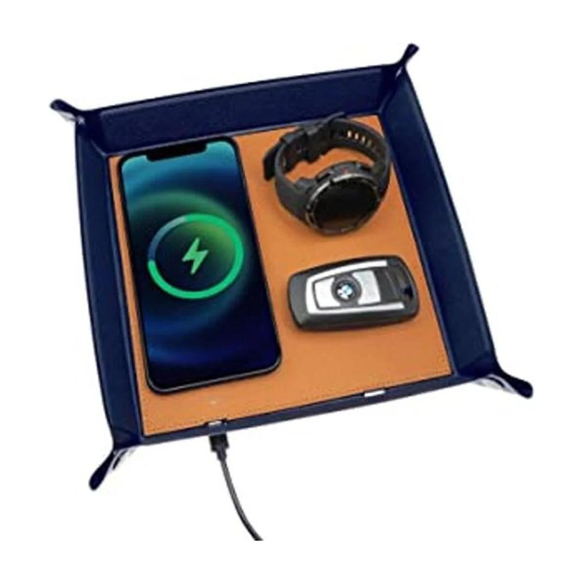 Multiusos: coloca esta bandeja en tu mesita de noche, mesita de noche, aparador, armario de consola para entrada, en la oficina o vestidor. Cuando llegues a la oficina o llegues a casa, simplemente coloca tu teléfono y otras cosas pequeñas en la bandeja, suelta y carga tu teléfono simultáneamente.